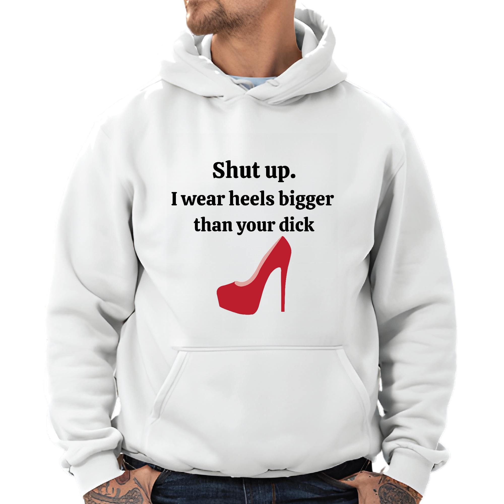 Shut Up I Wear Heels Bigger Than Your Dick Saying Humor for Woman Boss Lady Gift Gray and Muticolor Unisex Hoodie
