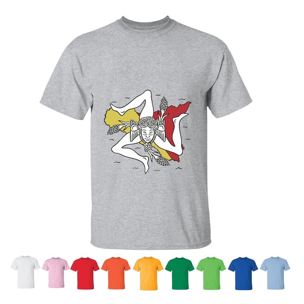 Sicily Flag and Map Gift Idea for Italian History Culture Lovers Men Women White Gray T shirt