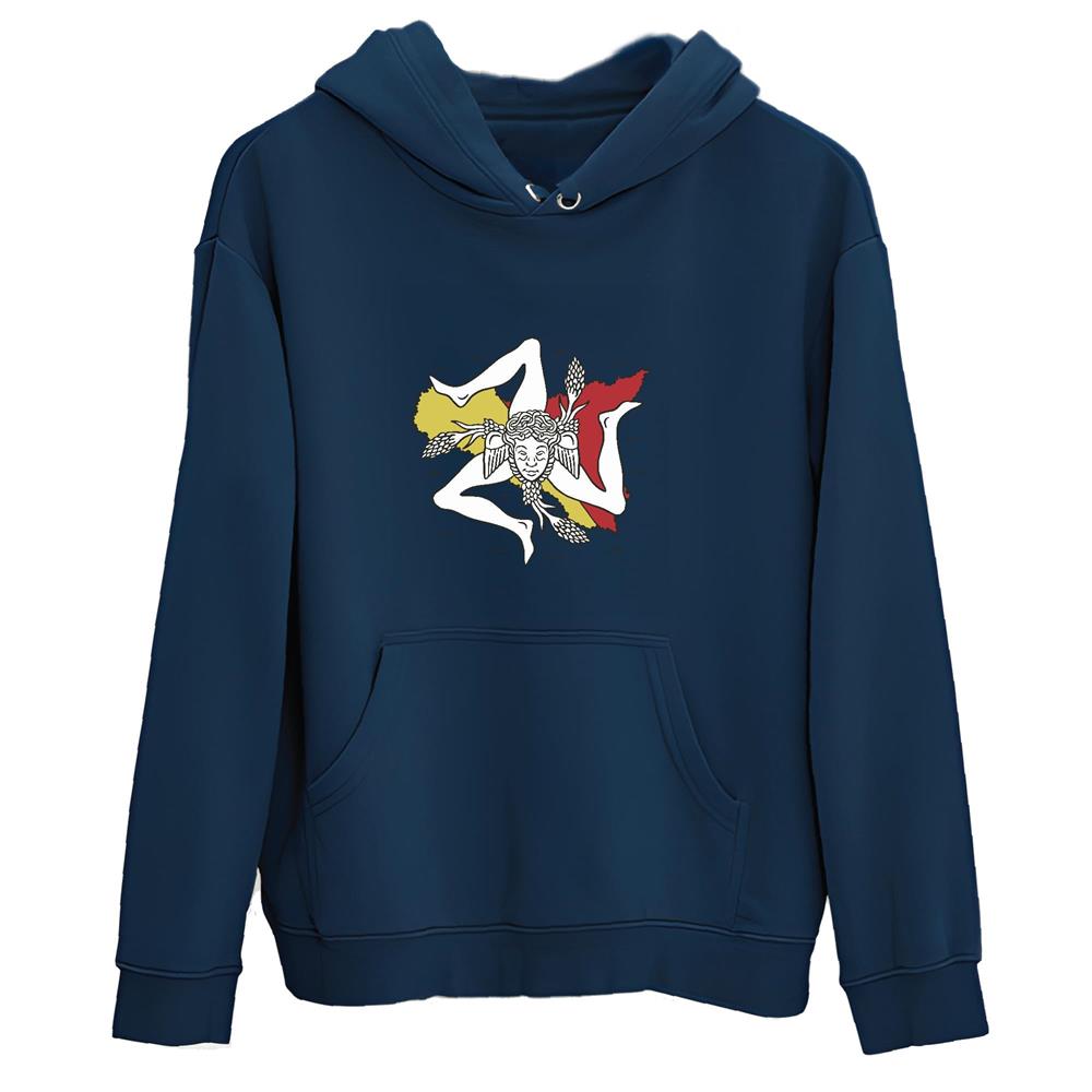Sicily Flag and Map Gift Idea for Italian History Culture Lovers Navy and Muticolor Unisex Hoodie