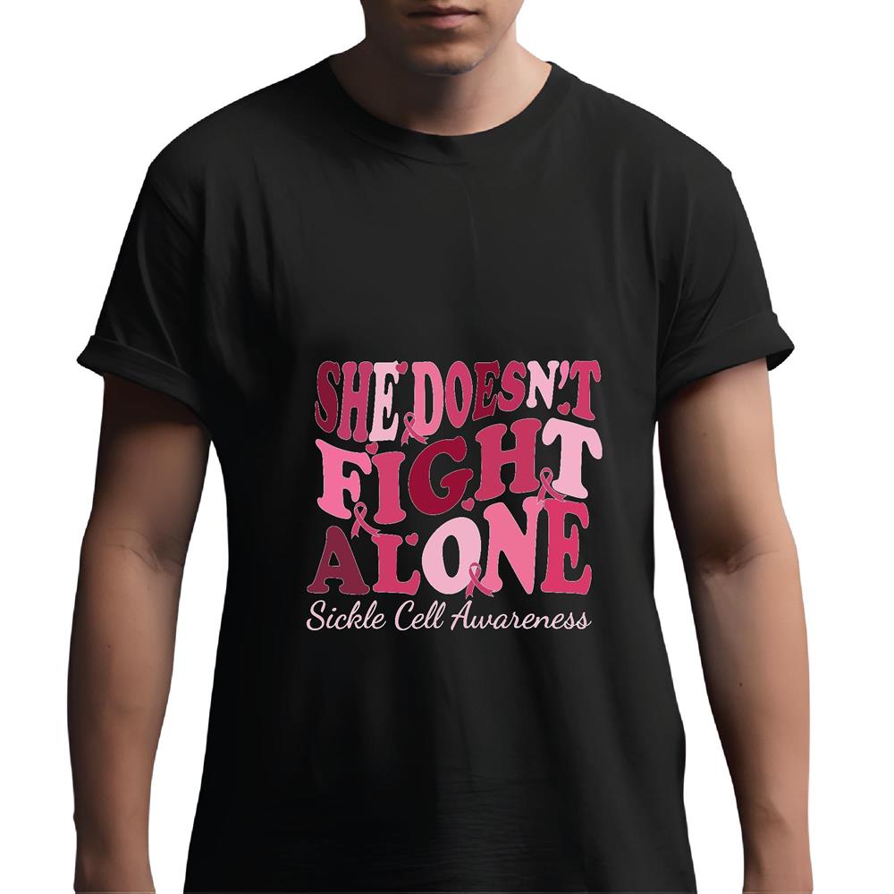 Sickle Cell Awareness Gift for Her Showing She Doesn t Fight Alone Men Women Black Multicolor T shirt