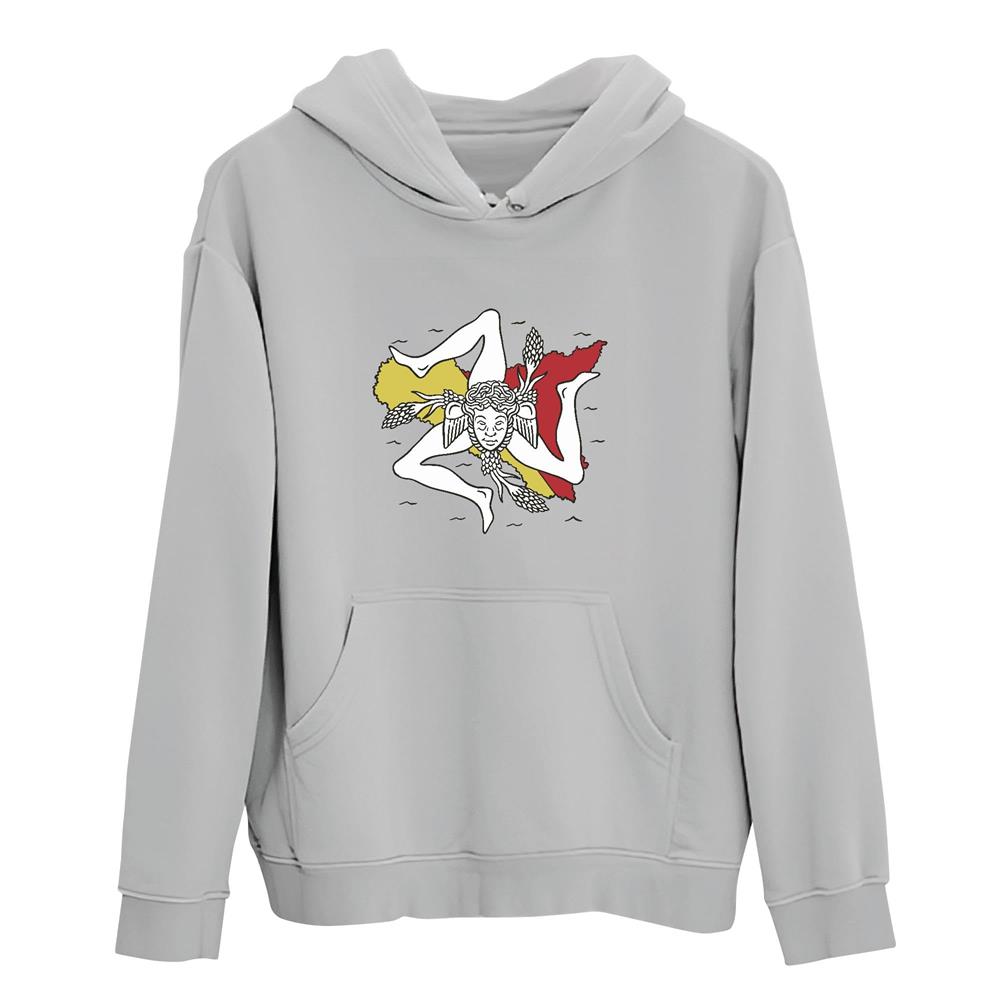 Sicily Flag and Map Gift Idea for Italian History Culture Lovers Gray and Muticolor Unisex Hoodie