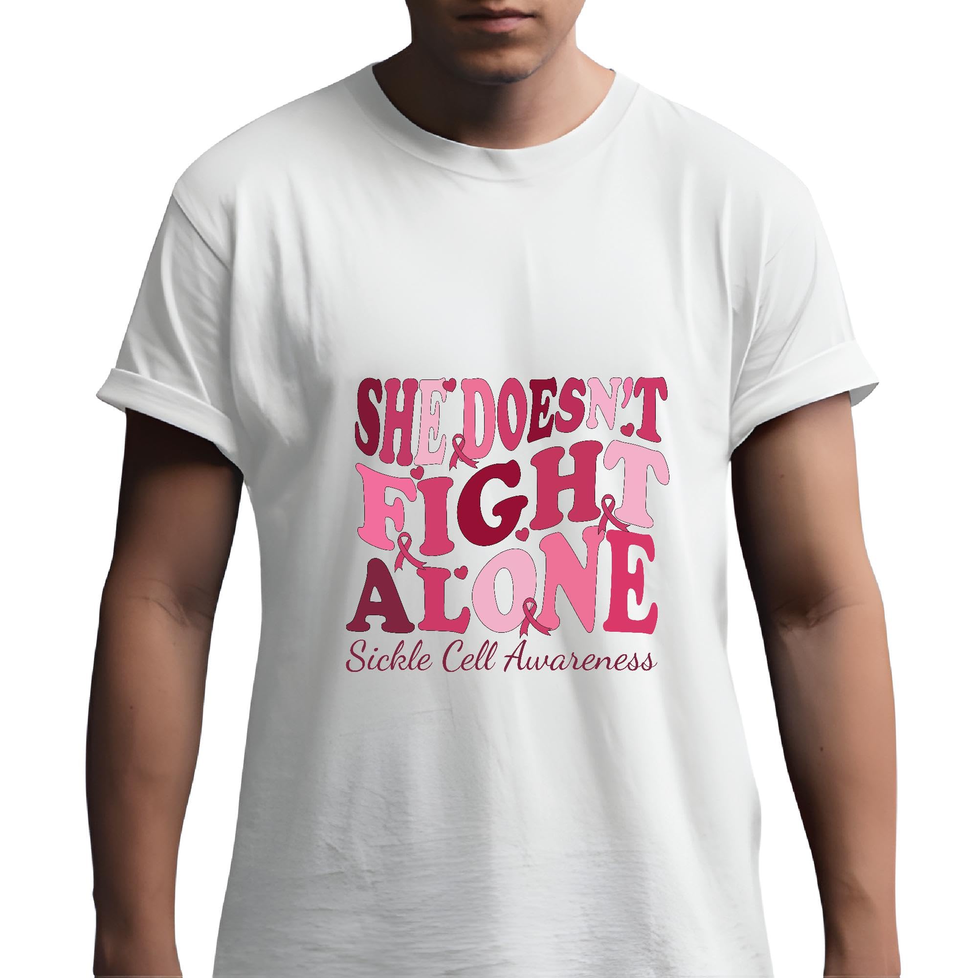 Sickle Cell Awareness Gift for Her Showing She Doesn t Fight Alone Men Women White Gray Multicolor T shirt