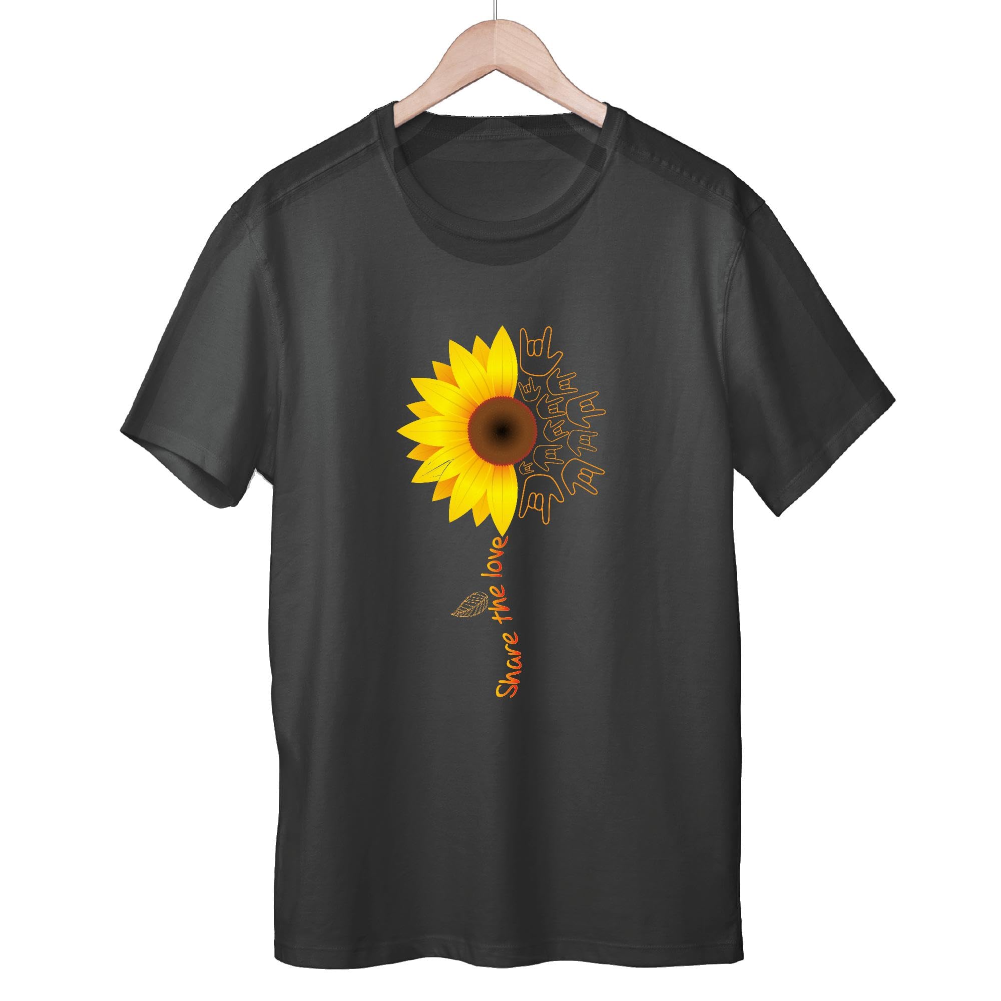 Sign Language American Sunflower Share Love Peace Sign Gift for Deaf Community Men Women Black Multicolor T shirt