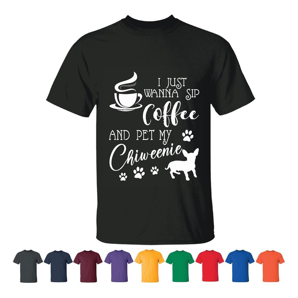 Sipping Coffee and Cuddling Chiweenie t-shirtFunny for Dog Lovers Men Women Black T shirt