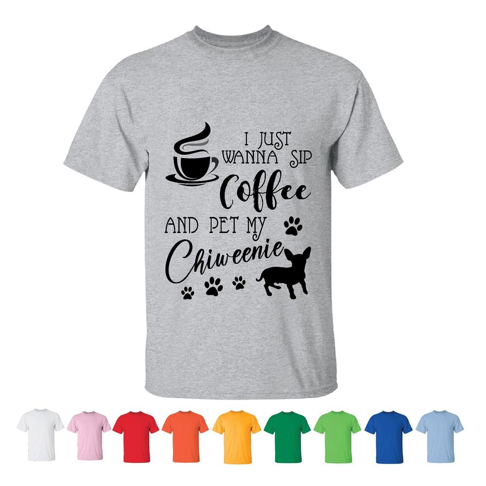 Sipping Coffee and Cuddling Chiweenie t-shirtFunny for Dog Lovers Men Women White Gray T shirt