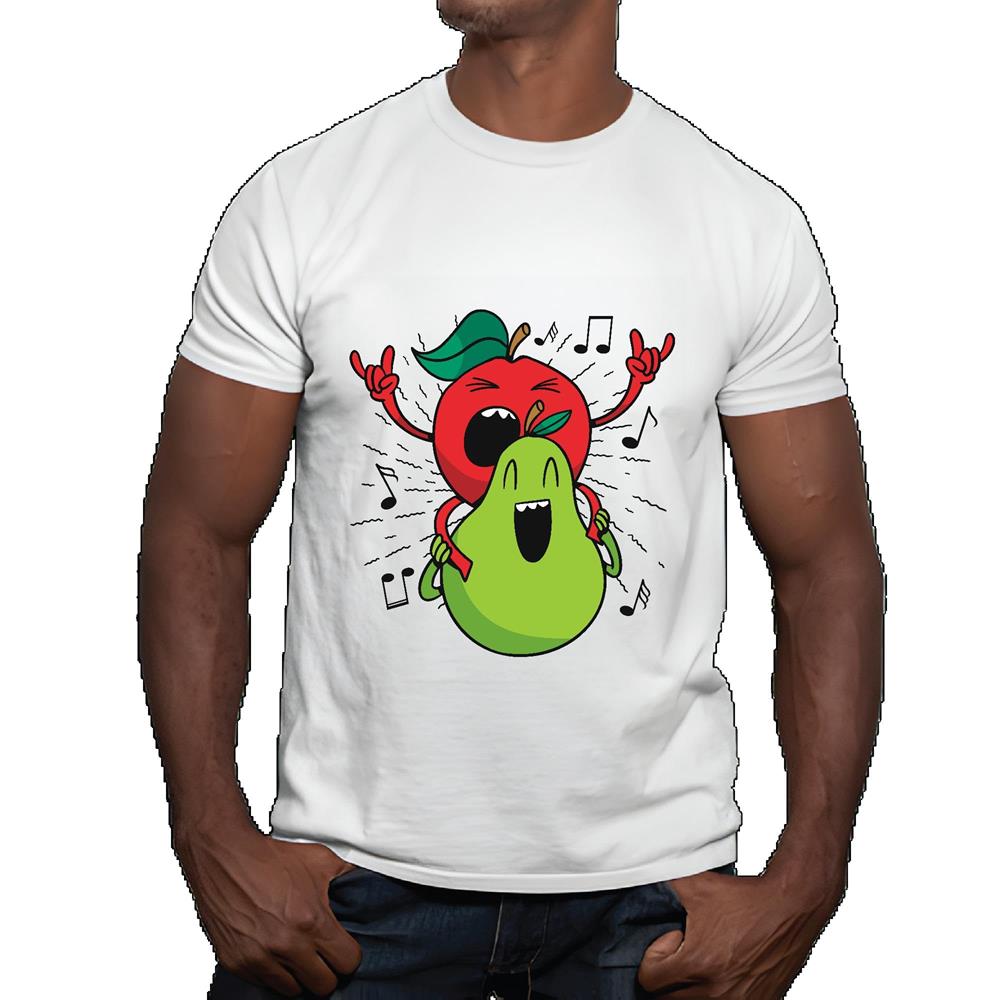 Singing Apple and Pear Gift for Kids Fun and Creative Present Idea Men Women White Gray Multicolor T shirt