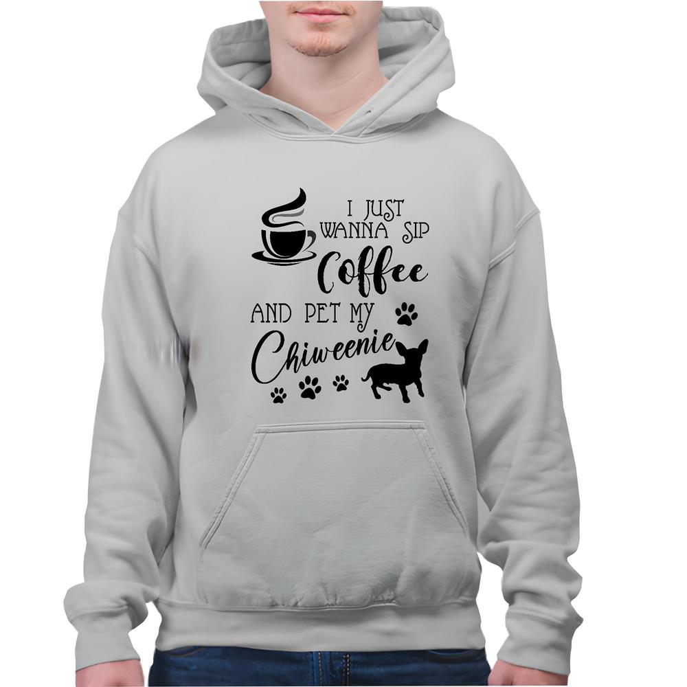 Sipping Coffee and Cuddling Chiweenie HoodieFunny for Dog Lovers Gray and Muticolor Unisex Hoodie