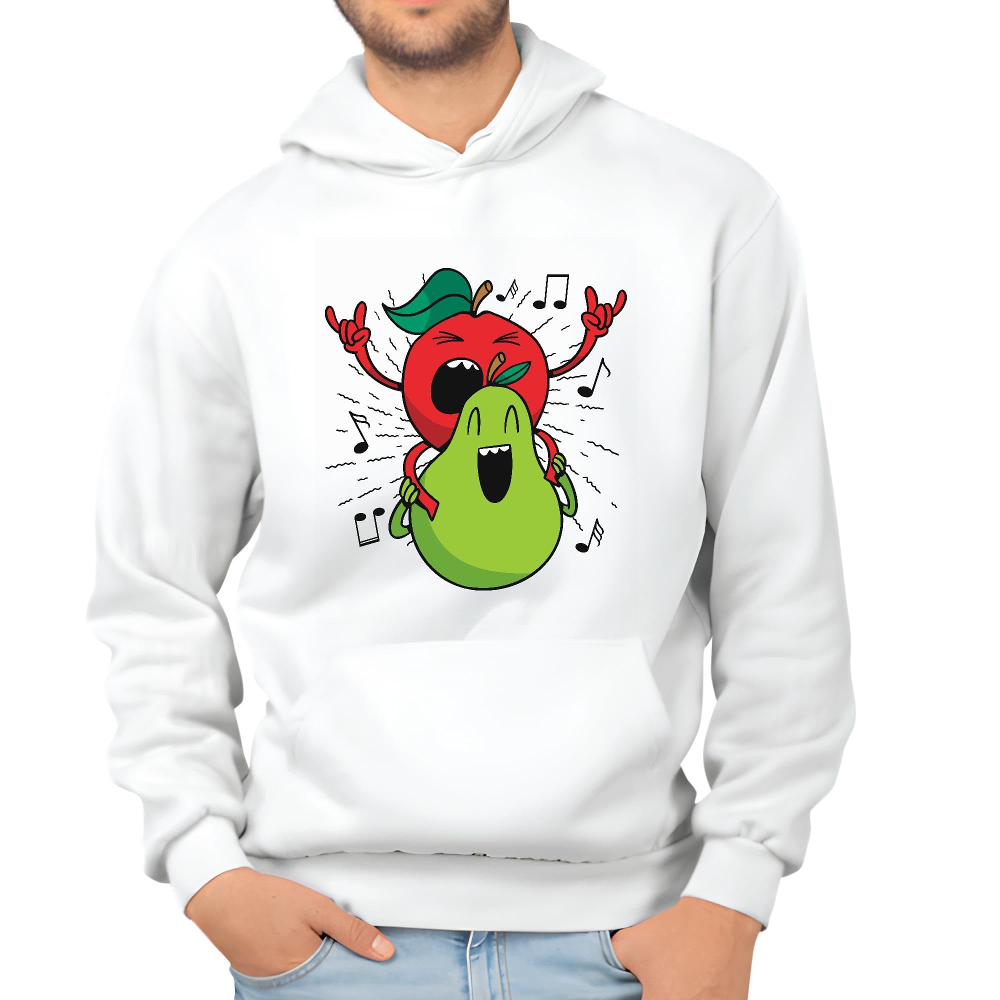 Singing Apple and Pear Gift for Kids Fun and Creative Present Idea White and Muticolor Unisex Hoodie