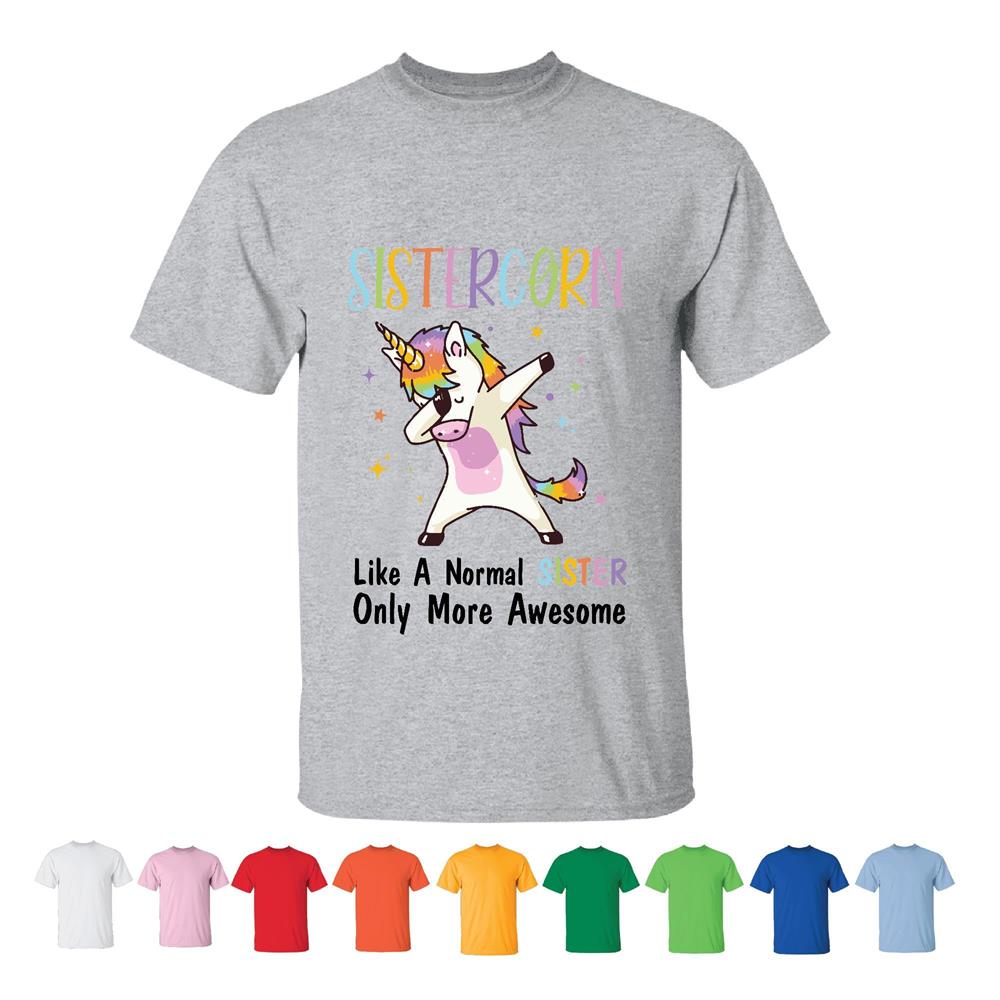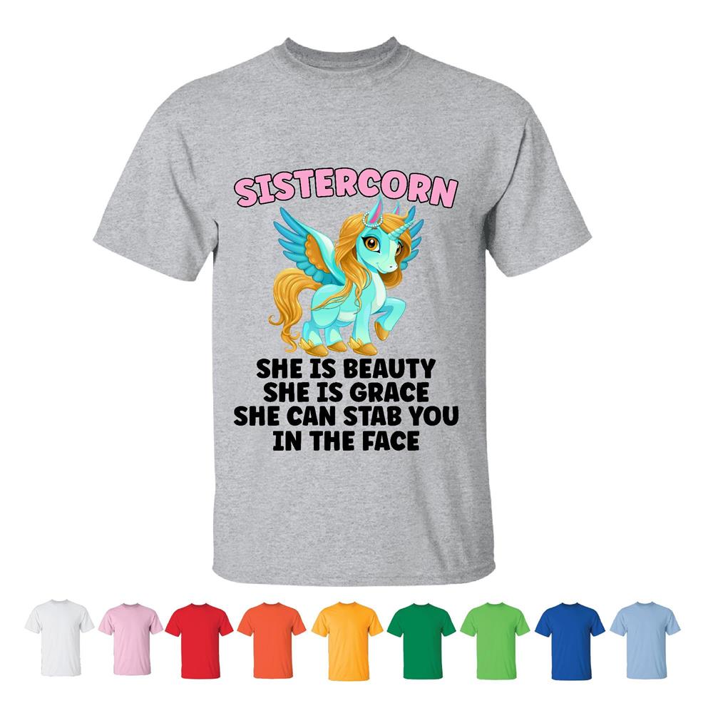 Sistercorn Unicorn Humor Saying for Big Sisters Gifts for Big Siblings Men Women White Gray T shirt