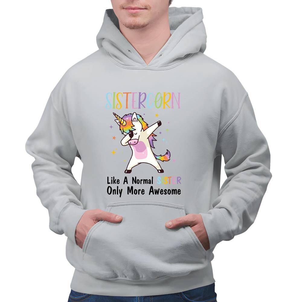 Sistercorn Gift for Awesome Sister Unicorn Graphic Gray and Muticolor Unisex Hoodie