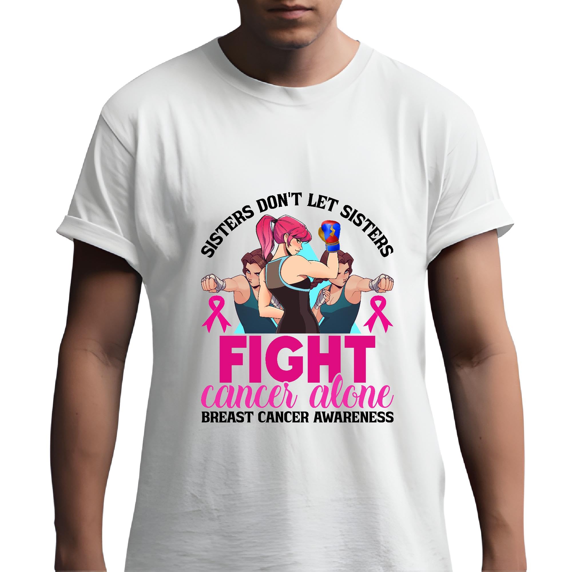 Sisterly Support Breast Cancer Awareness Men Women White Gray Multicolor T shirt