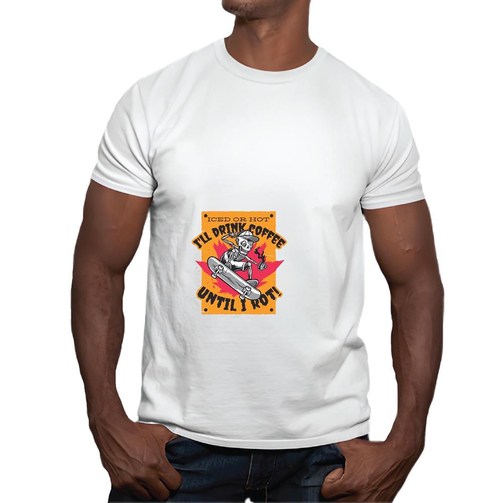 Skateboarding and Skeleton Gift for Coffee Lovers for Skaters and Skate Fans Men Women White Gray Multicolor T shirt