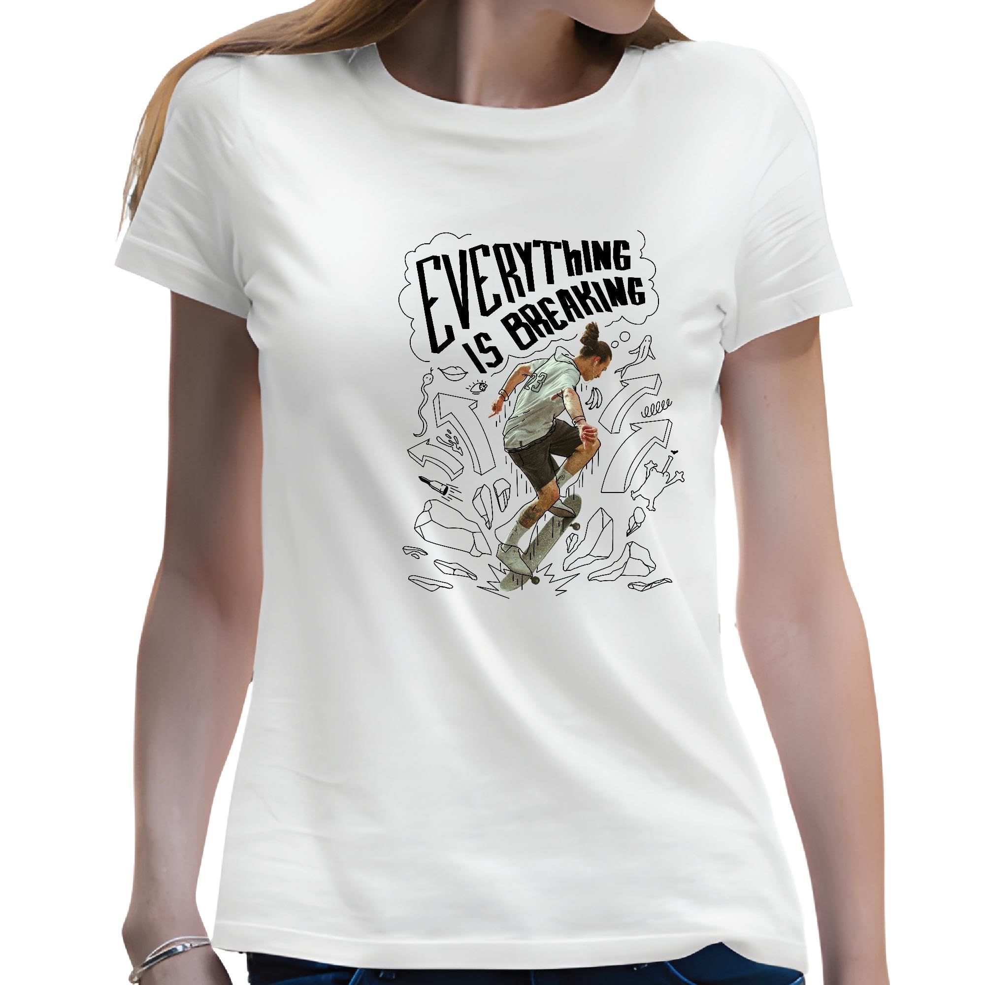 Skateboarding Gift for Boys Skate Doodle Quote Everything is Breaking Men Women White Gray Multicolor T shirt