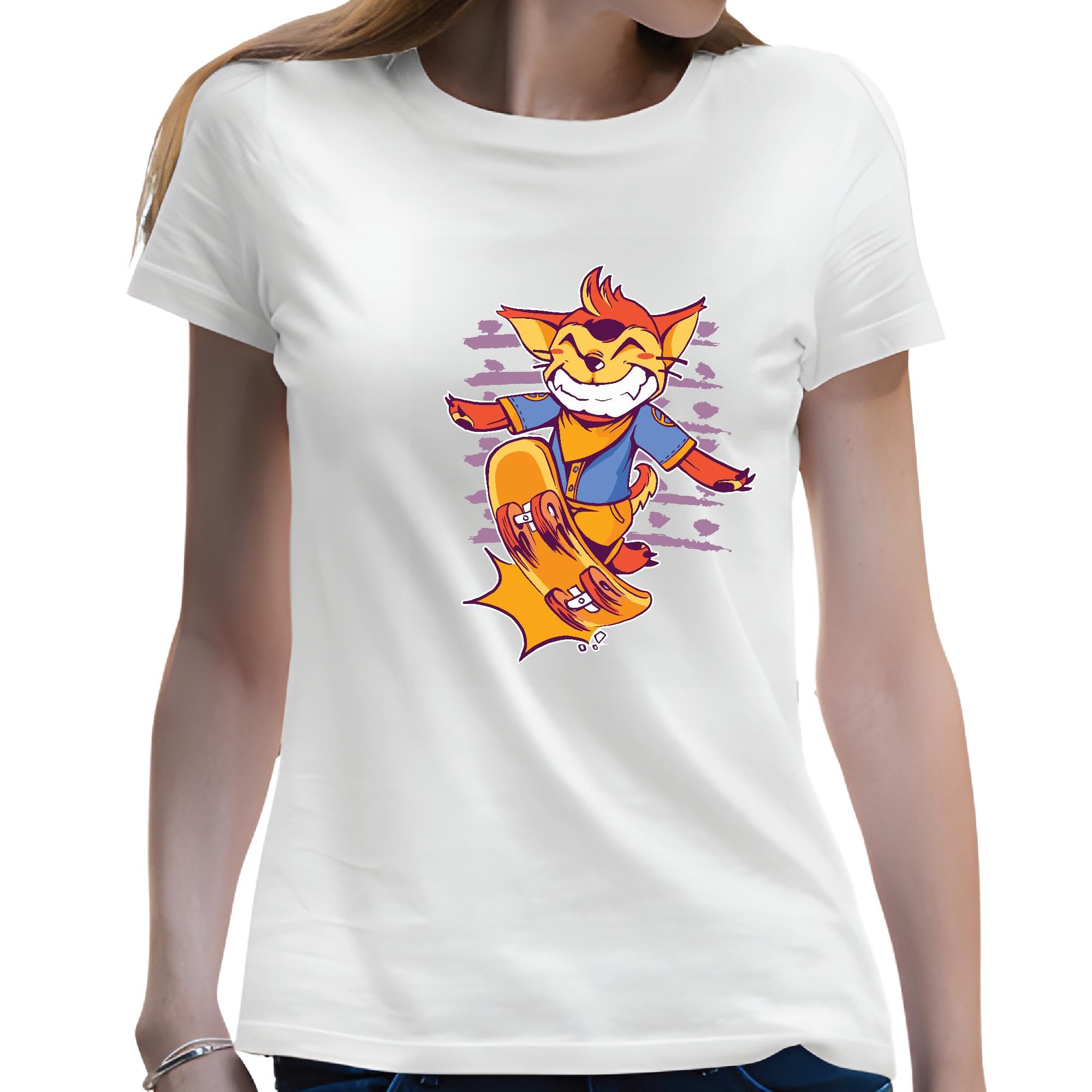 Skateboarding Fox Gift for Skateboarding Fans Gift Idea Men Women White Gray Multicolor T shirt