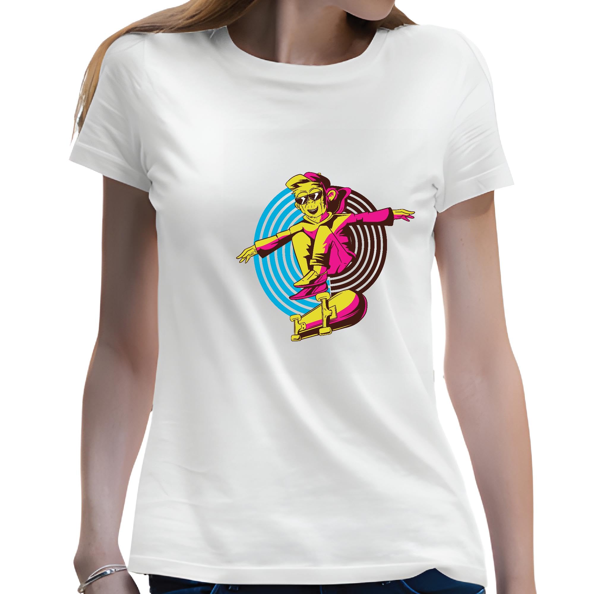 Skateboarding Gift for Kids Skater Monkey Wearing and Sunglasses Men Women White Gray Multicolor T shirt