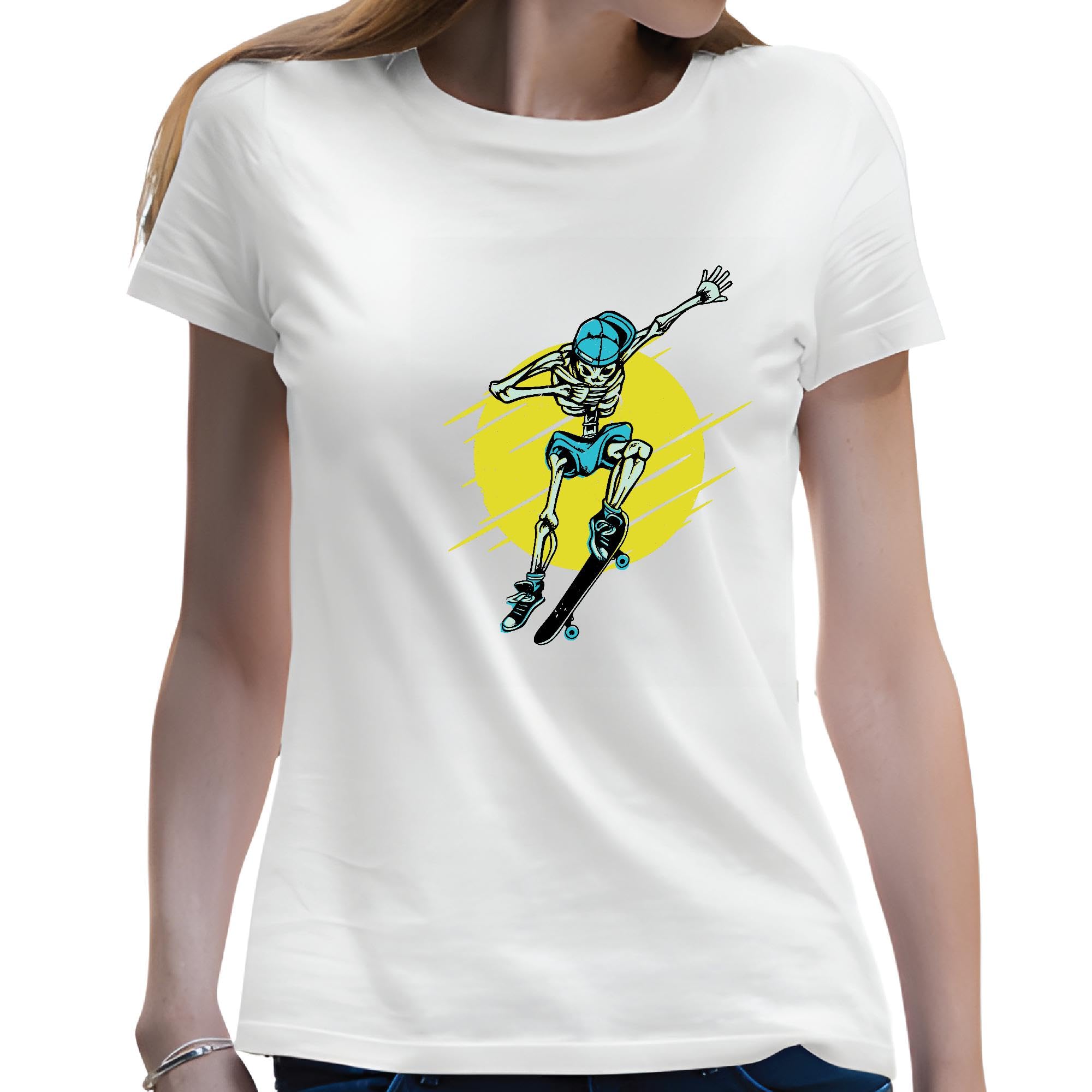 Skateboarding Gift for Skater Fans Skeleton Skating Wearing a Hat Men Women White Gray Multicolor T shirt