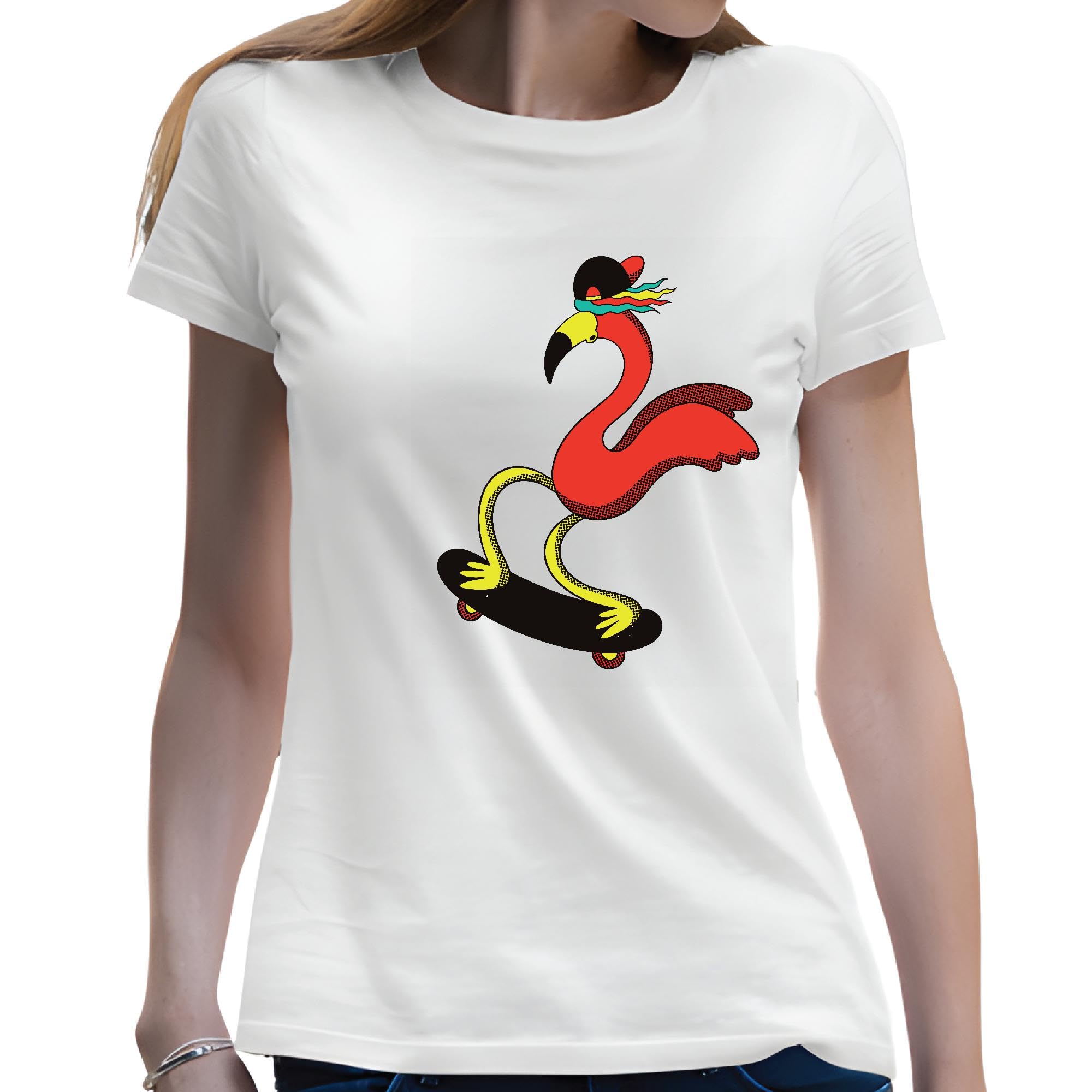 Skateboarding Gift for Skater Fans Flamingo Wearing Hat Men Women White Gray Multicolor T shirt
