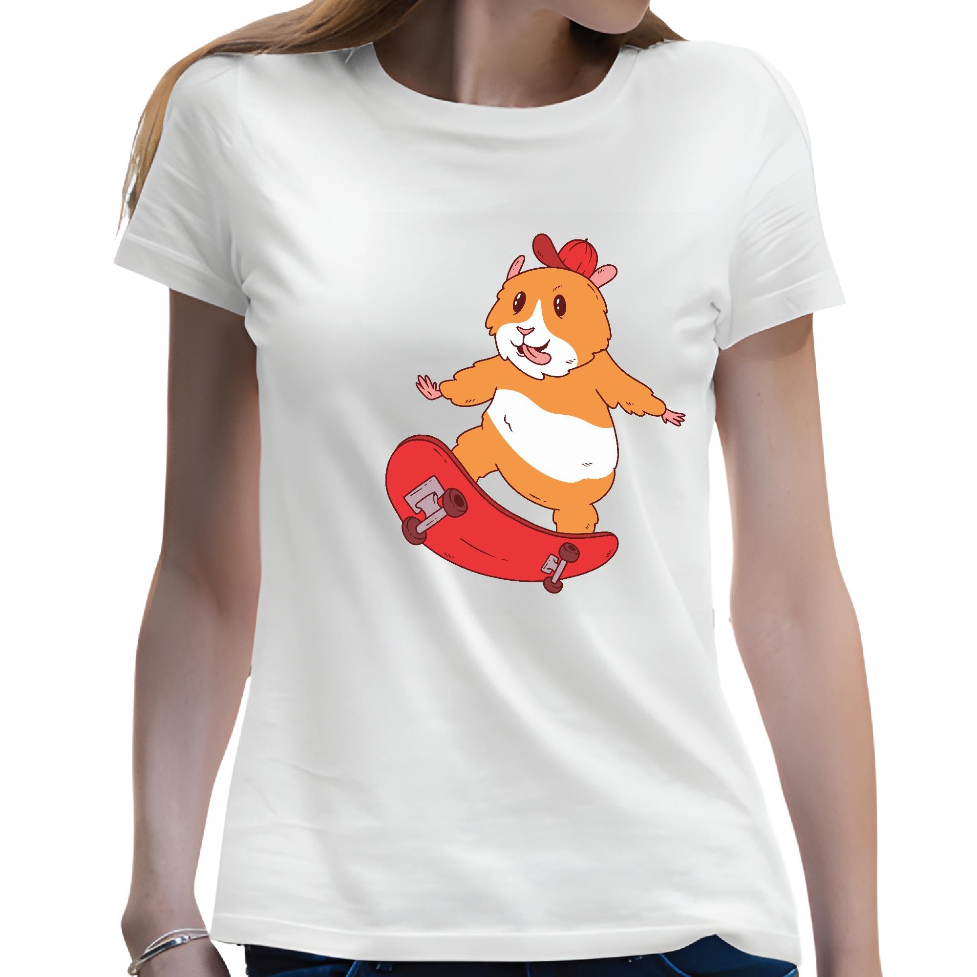 Skateboarding Gift for Skater Hamster Fans Men Women White Gray Multicolor T shirt