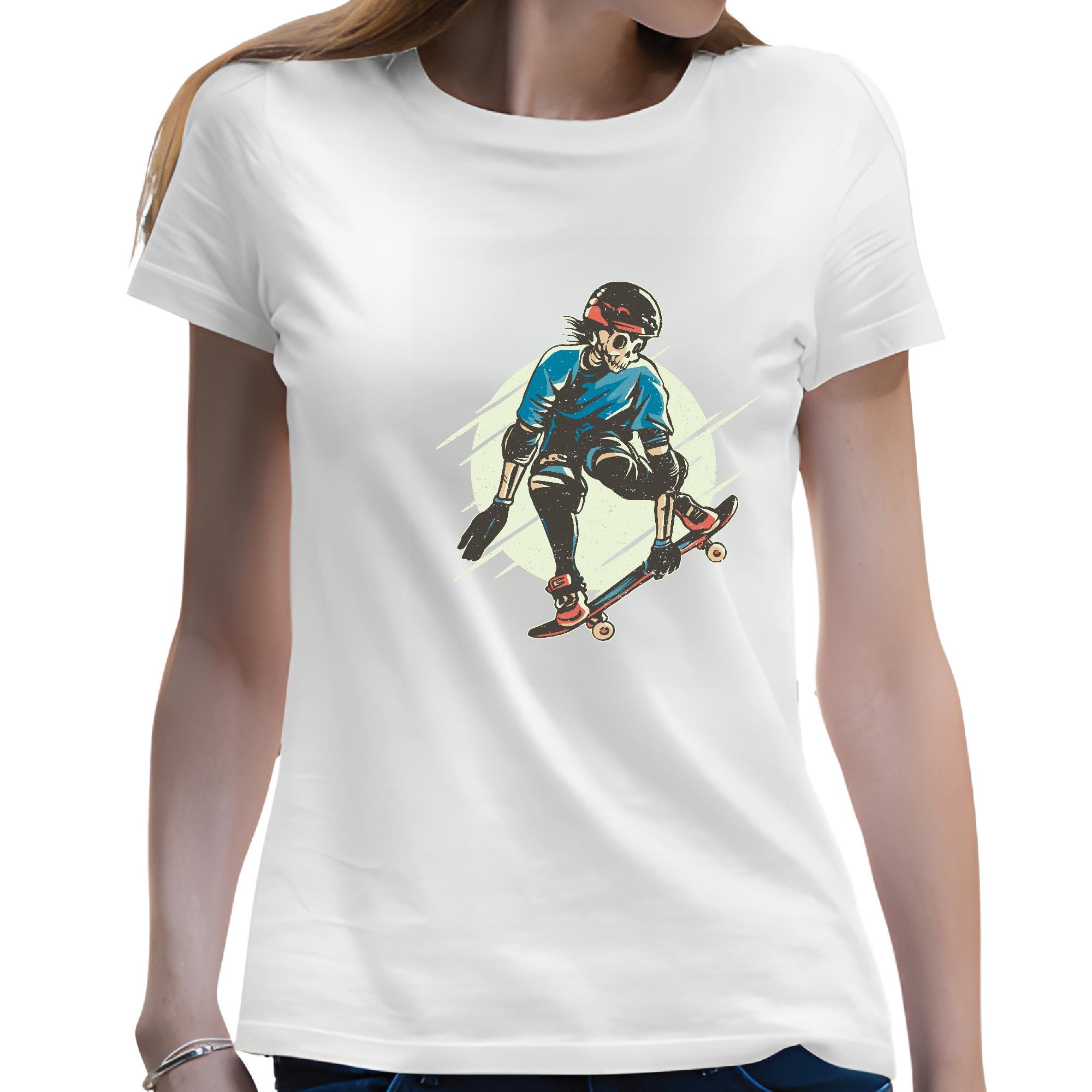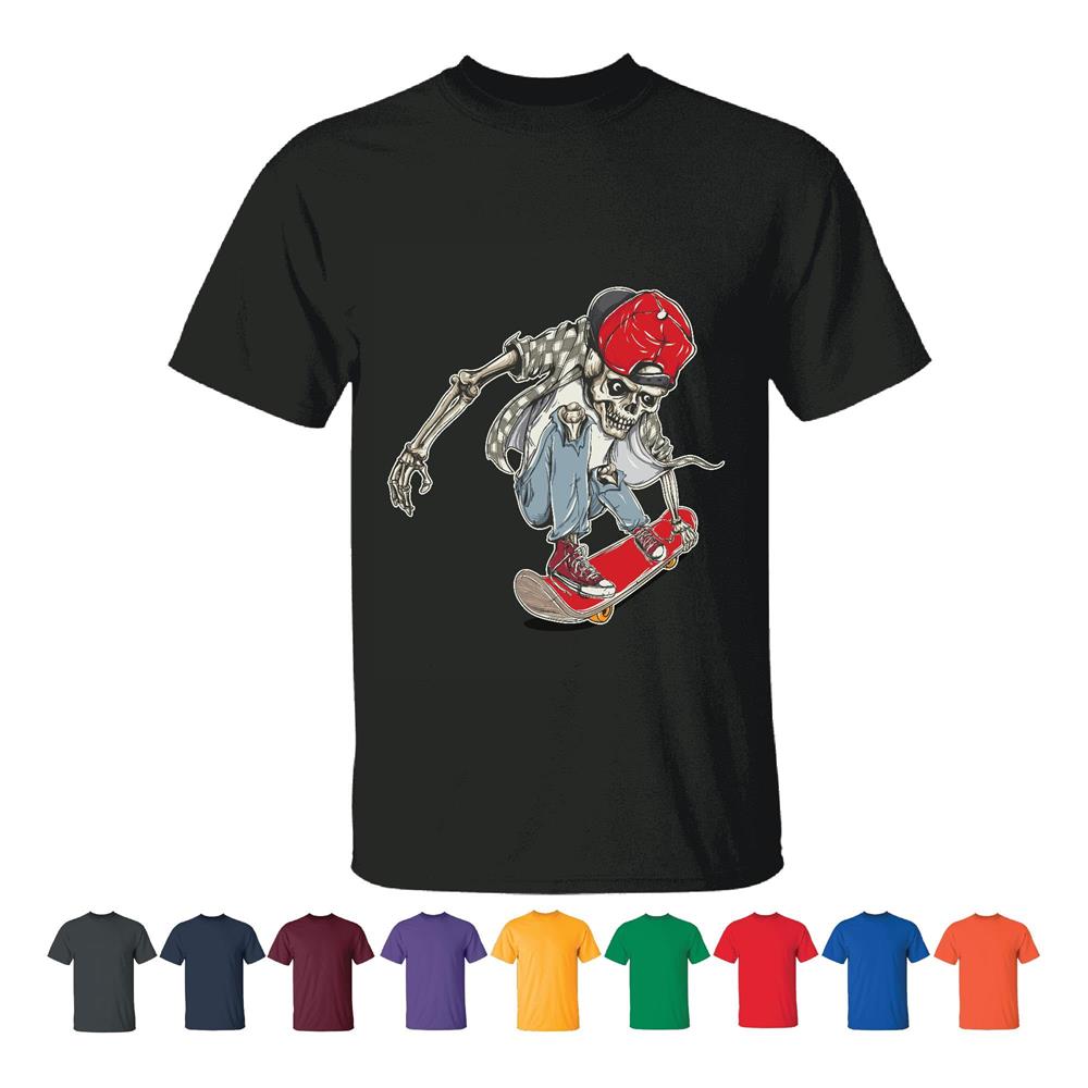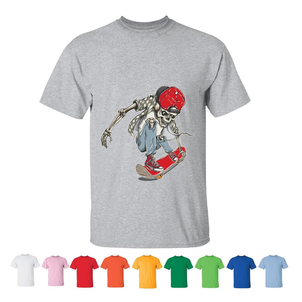 Skateboarding Skeleton Character Gift for Skaterboarding Fans Men Women White Gray Multicolor T shirt