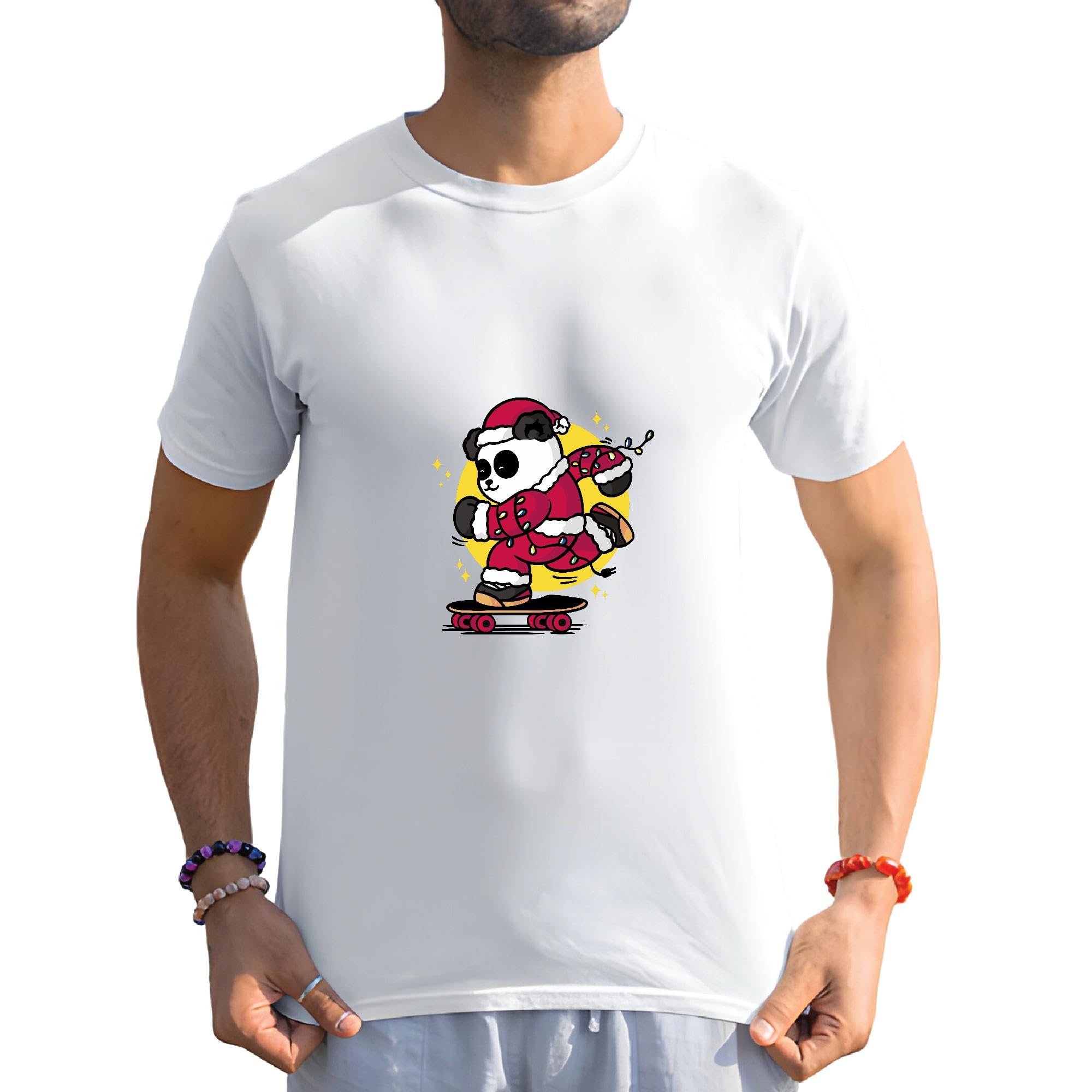 Skateboarding Santa Panda Bear Cartoon Gift for Kids and Adults Men Women White Gray Multicolor T shirt