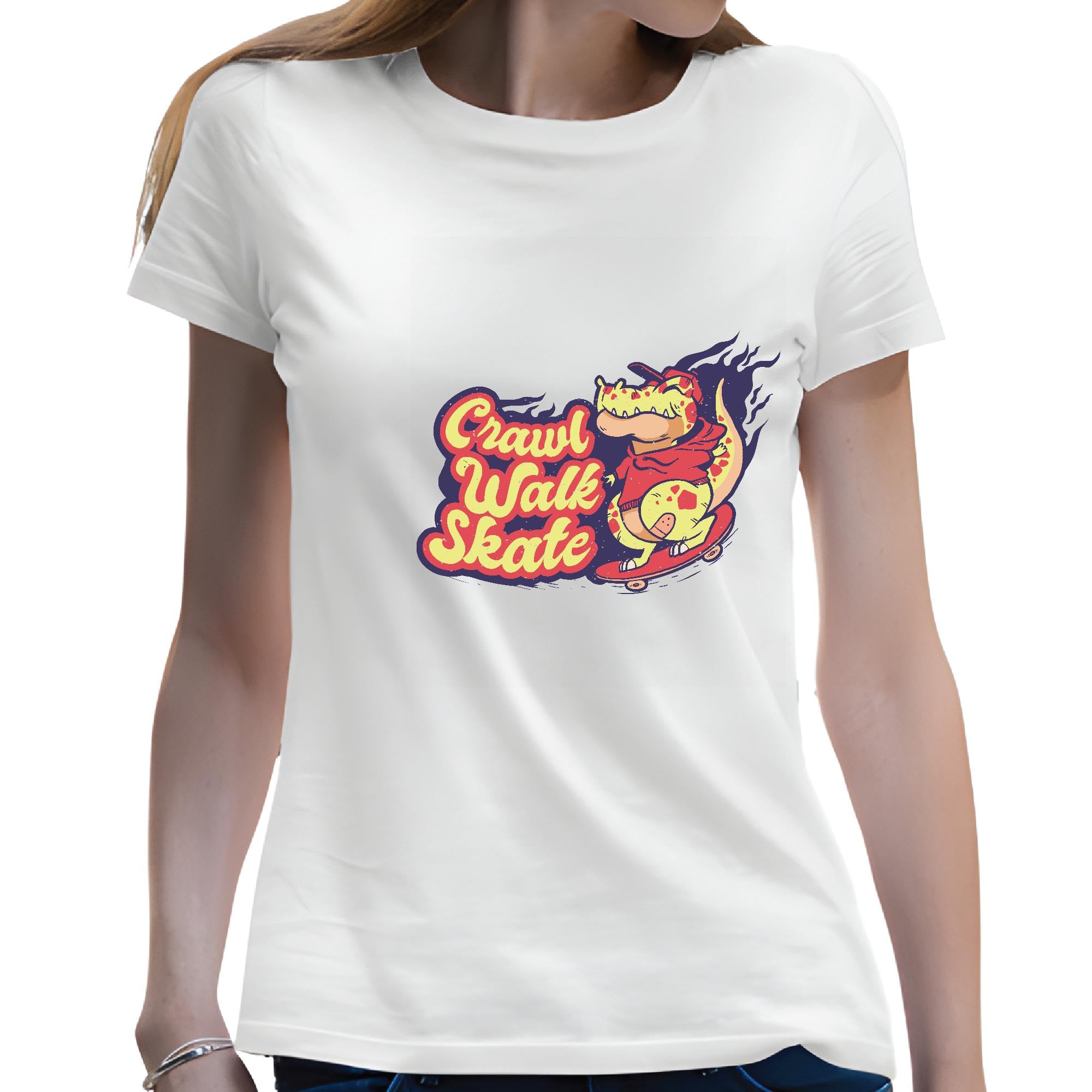 Skateboarding Quote Gift for Skaters Crawl Walk Skate Men Women White Gray Multicolor T shirt