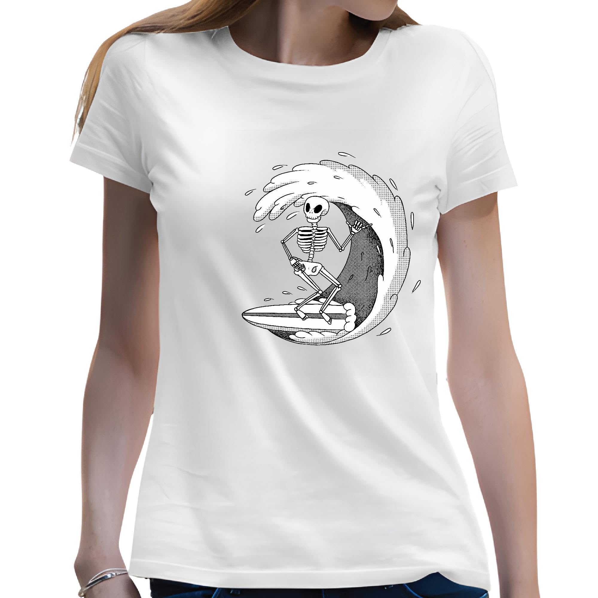Skeleton Surfing Wave Gift Surfing Themed Gifts for Surfers and Beach Lovers Men Women White Gray Multicolor T shirt