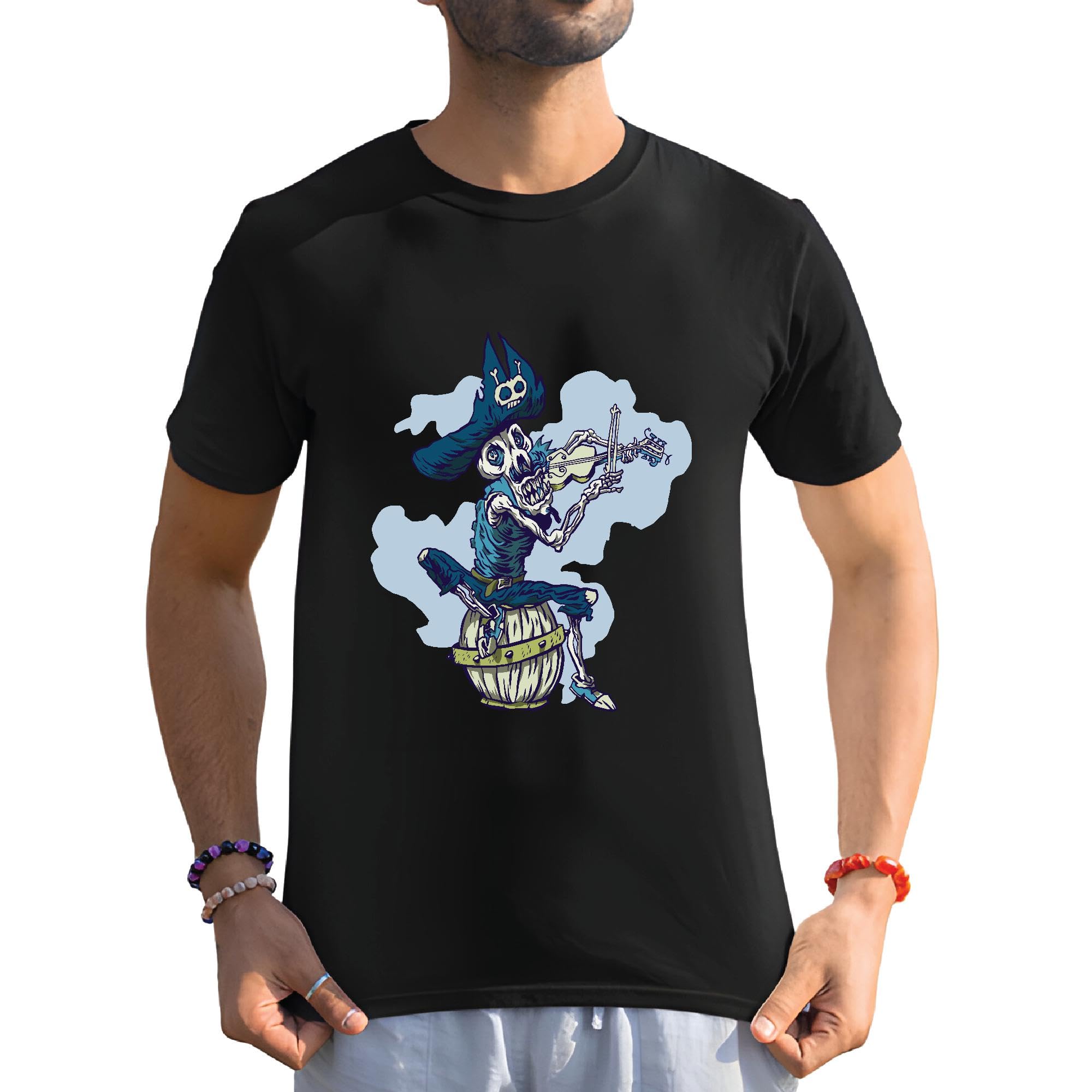 Skeleton Pirate Musician Gift Violin Playing Music for Music Lovers Men Women Black Multicolor T shirt