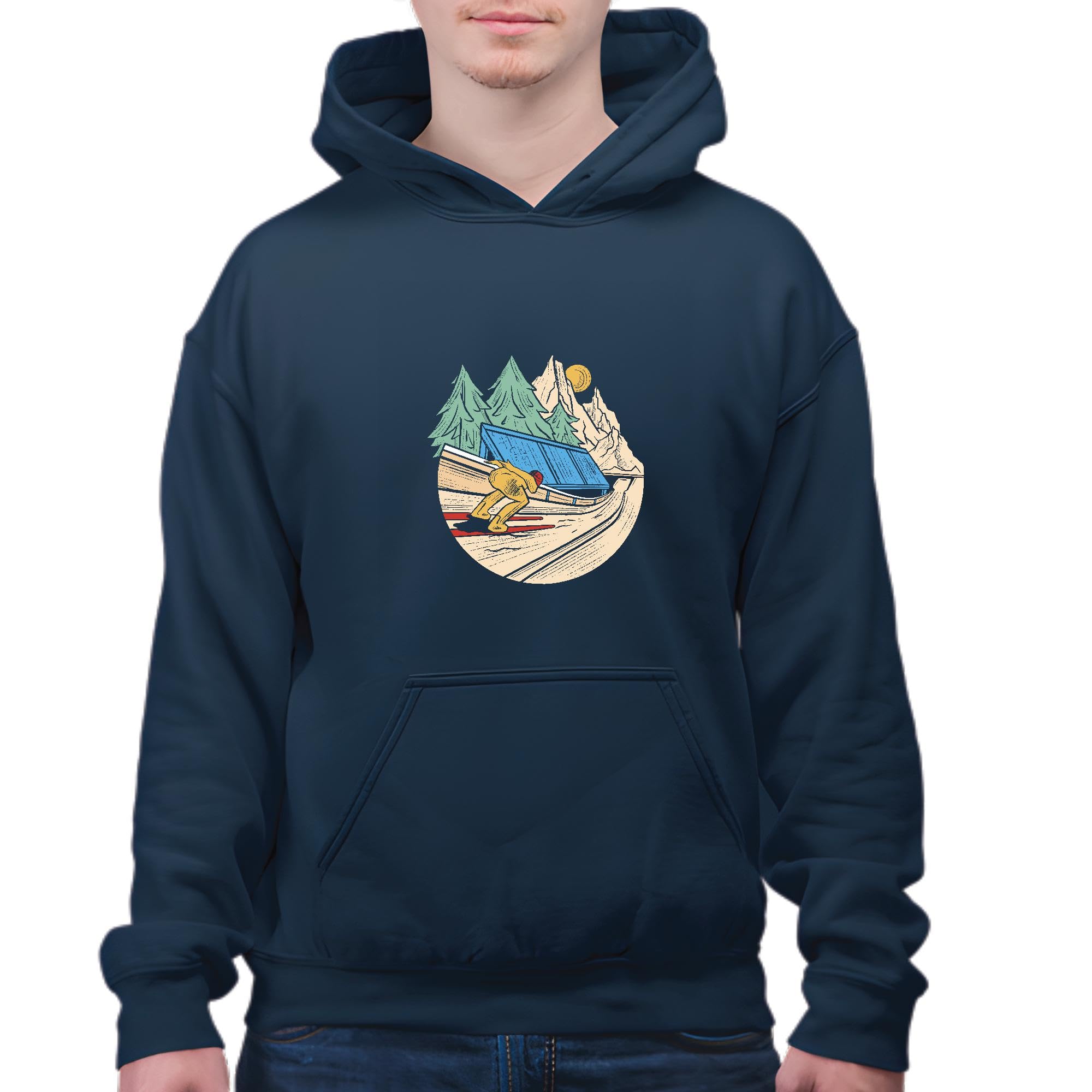 Ski Jumping Gift for Winter Sport Fans for Ski Lovers Navy and Muticolor Unisex Hoodie