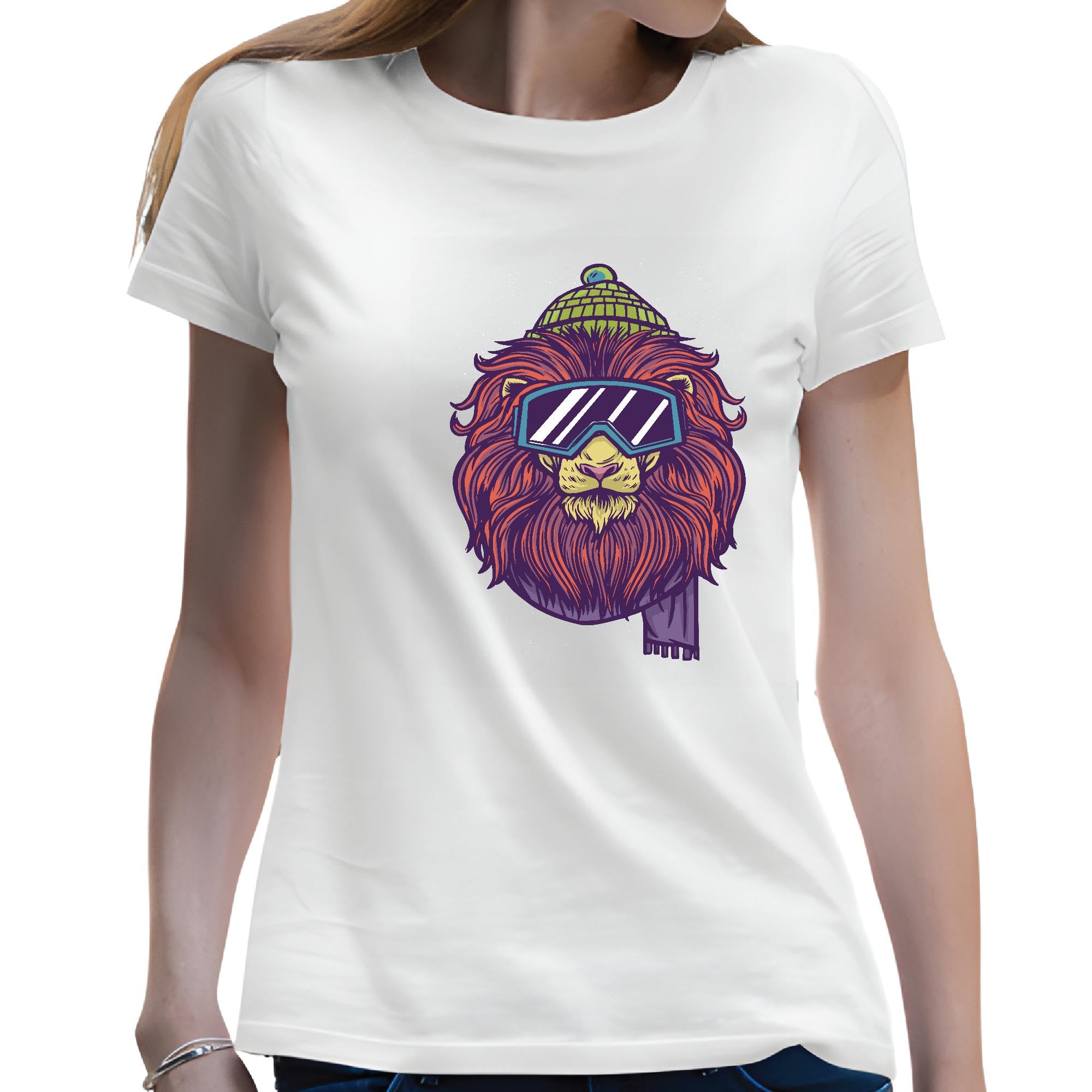 Ski Lion Gift for Ski Enthusiasts Lion Wearing Ski Gear Men Women White Gray Multicolor T shirt