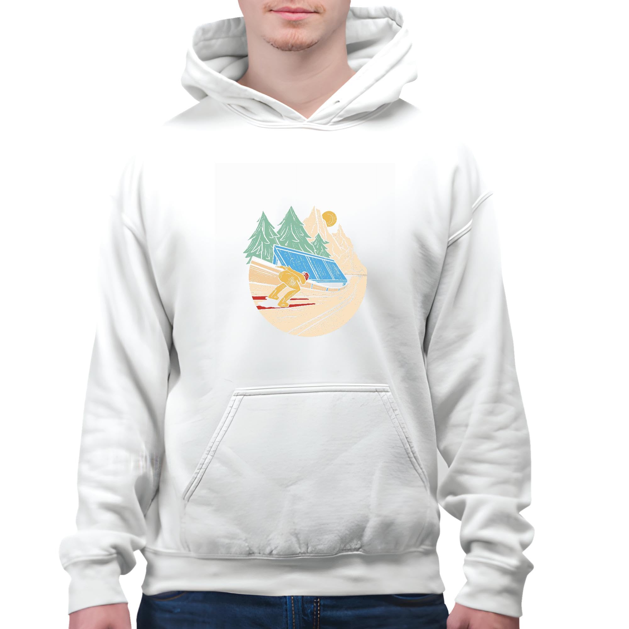 Ski Jumping Gift for Winter Sport Fans for Ski Lovers White and Muticolor Unisex Hoodie