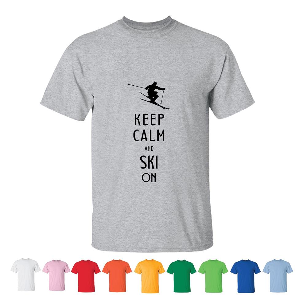 Skiing keep Calm who love to Skiers Men Women White Gray T shirt