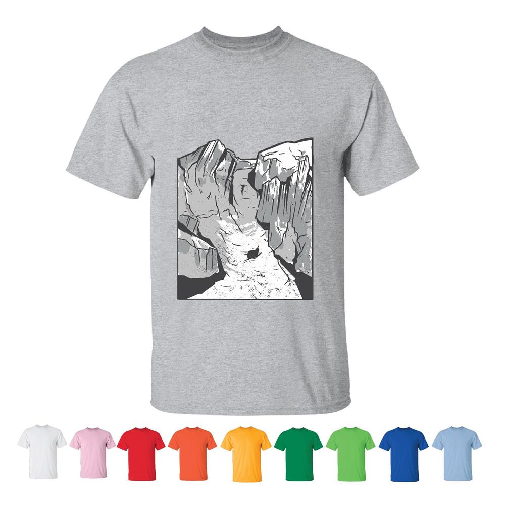 Skiing Mountain Sport Gift for Winter Sports Enthusiasts Person Skiing Down Snowy Mountain Men Women White Gray T shirt