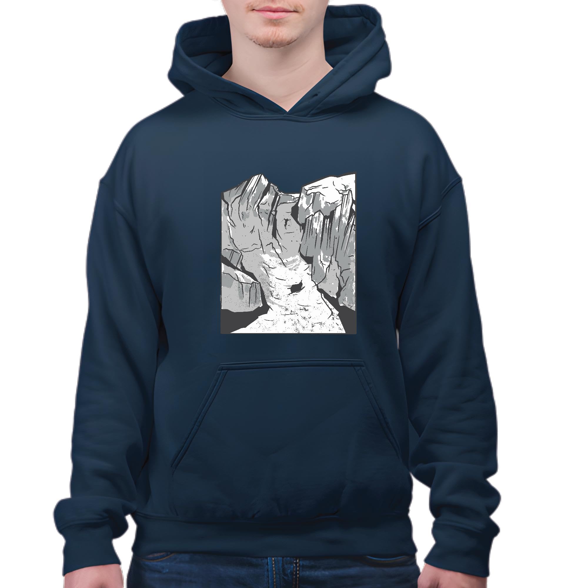 Skiing Mountain Sport Gift for Winter Sports Enthusiasts Person Skiing Down Snowy Mountain Navy and Muticolor Unisex Hoodie
