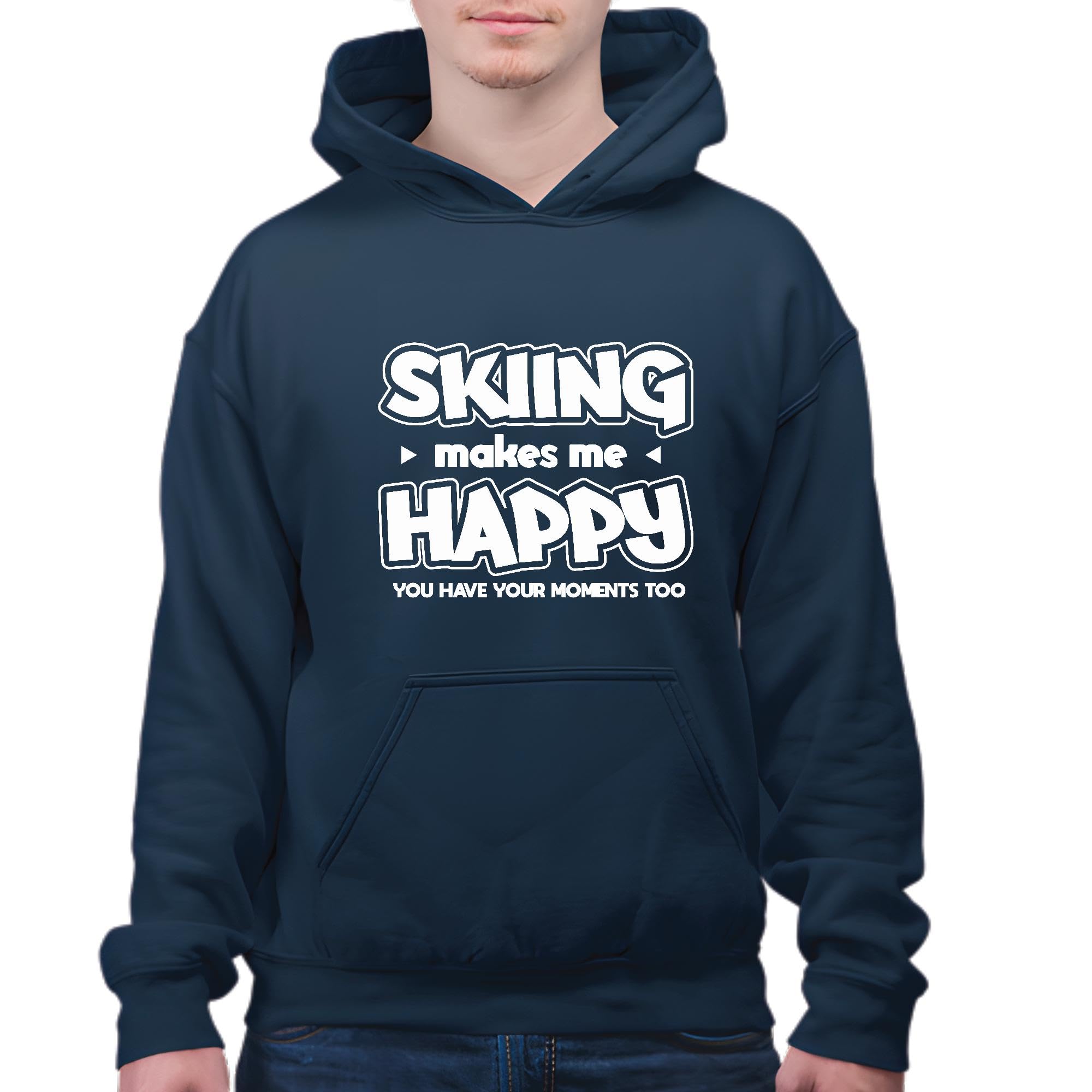 Skiing Makes You Happy – Perfect Gift for Skiers and Winter Sports Fans Navy and Muticolor Unisex Hoodie
