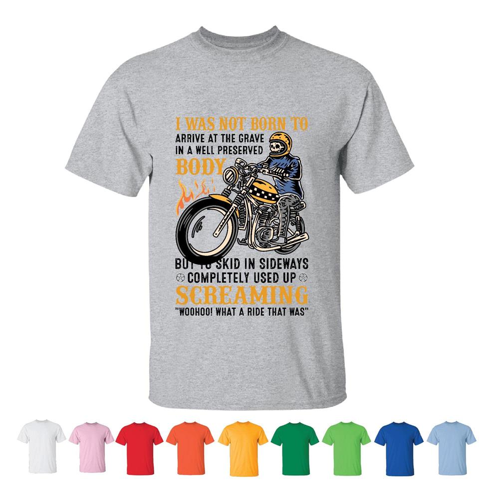 Skull Biker I was not born to arrive at the Grave Motorcycles Racer Skull Men Women White Gray T shirt