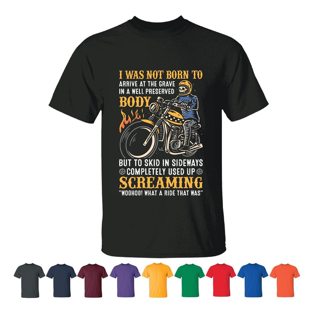 Skull Biker I was not born to arrive at the Grave Motorcycles Racer Skull Men Women Black T shirt