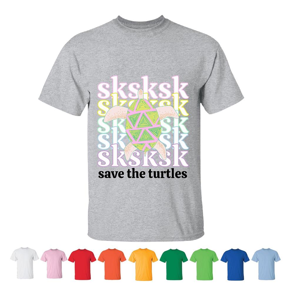 Sksksk and I Save the Turtles colorful sea animal for Turtle animal lovers Men Women White Gray T shirt