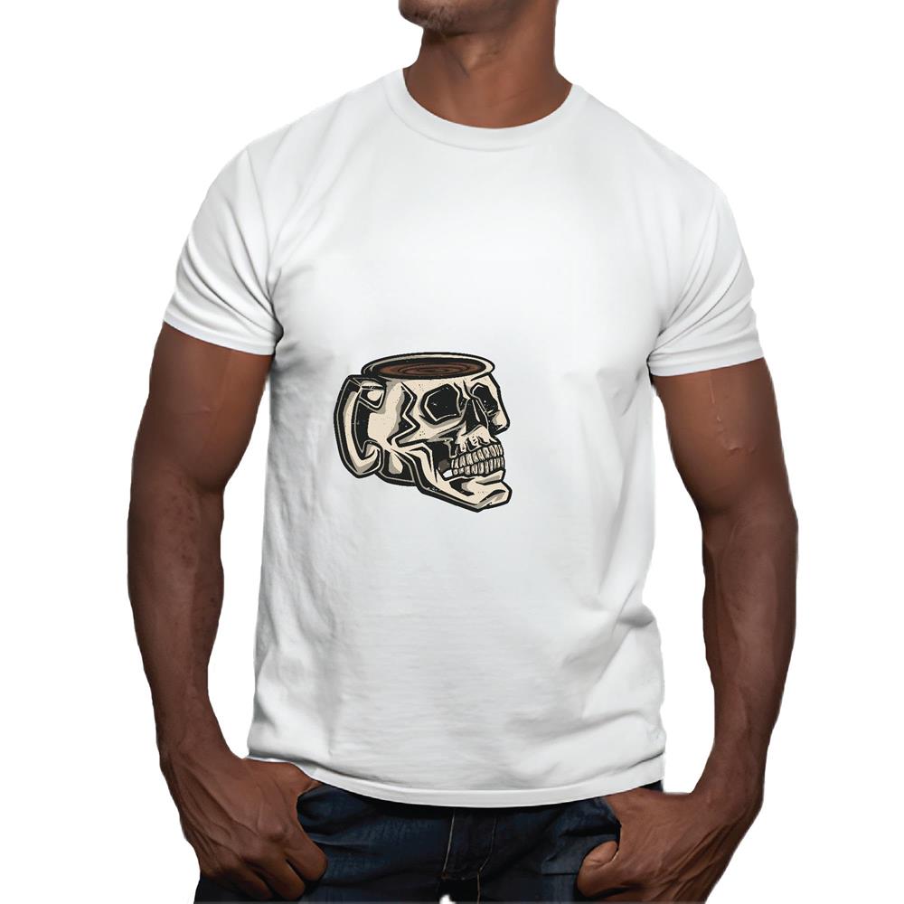 Skull Coffee Gift for Coffee Lovers Unique Drinkable Coffee Men Women White Gray Multicolor T shirt