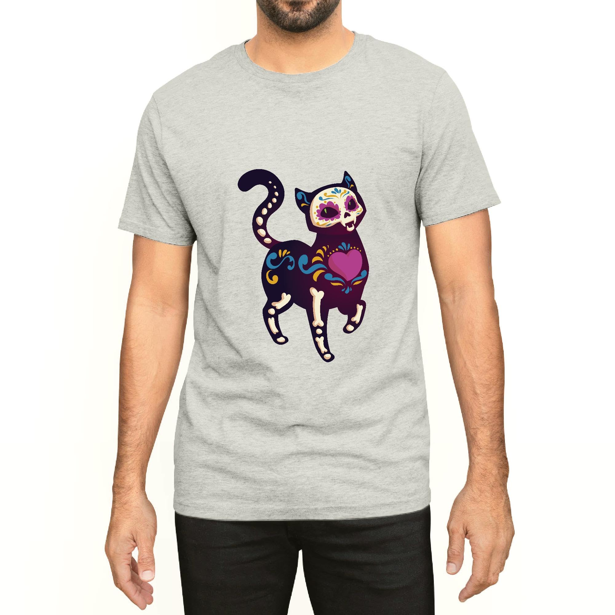 Skull Cat design Men Women White Gray Multicolor T shirt