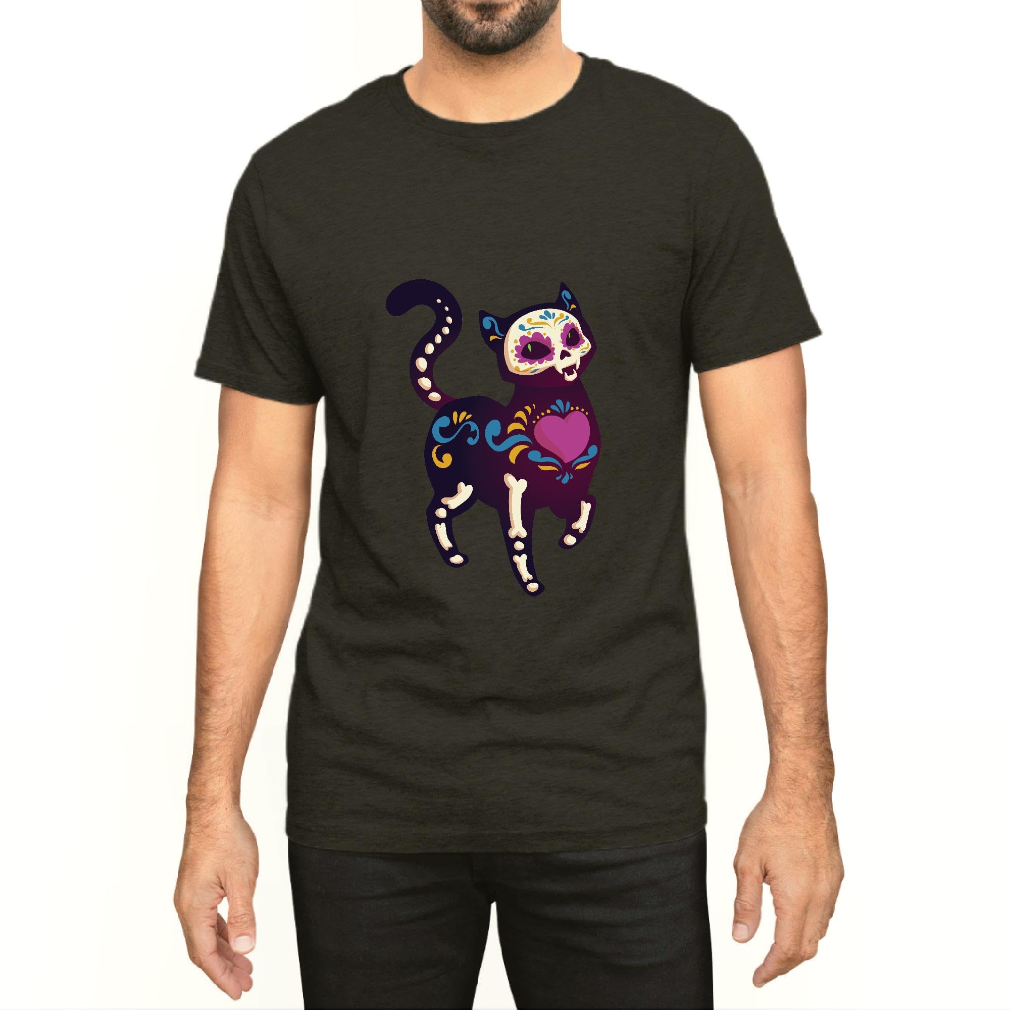 Skull Cat design Men Women Black Multicolor T shirt