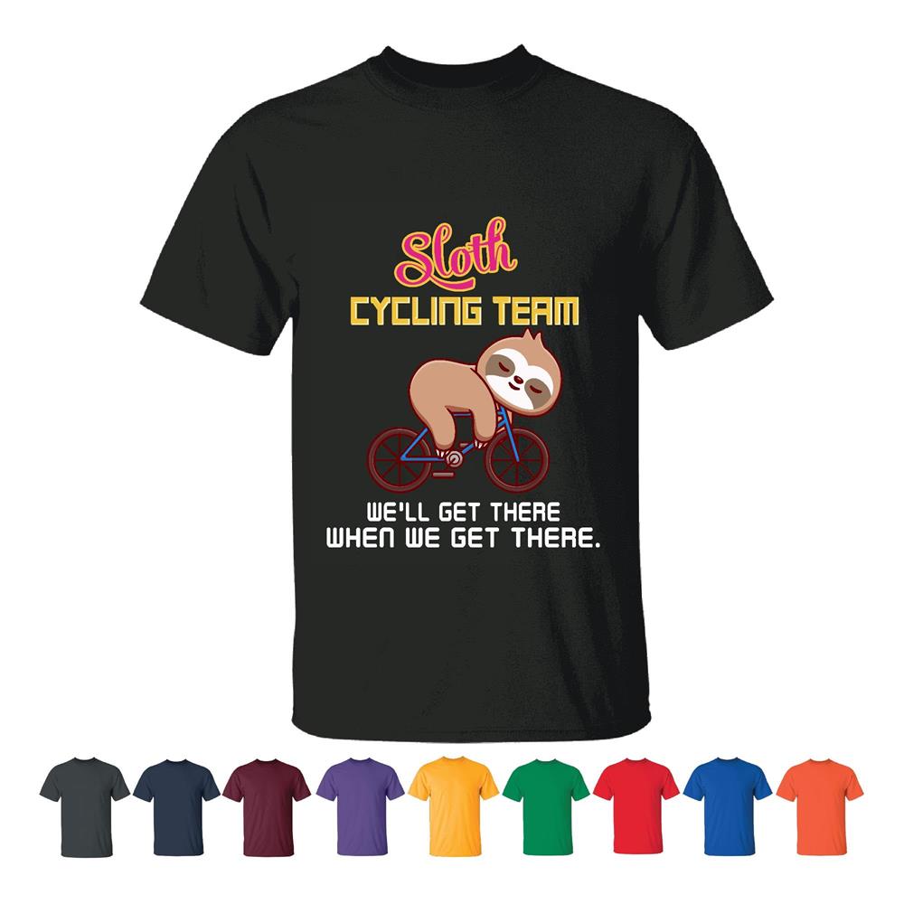 Sloth Cycling Team Shirt for Lazy Sleepers Mocking Bicycle Riding Men Women Black T shirt