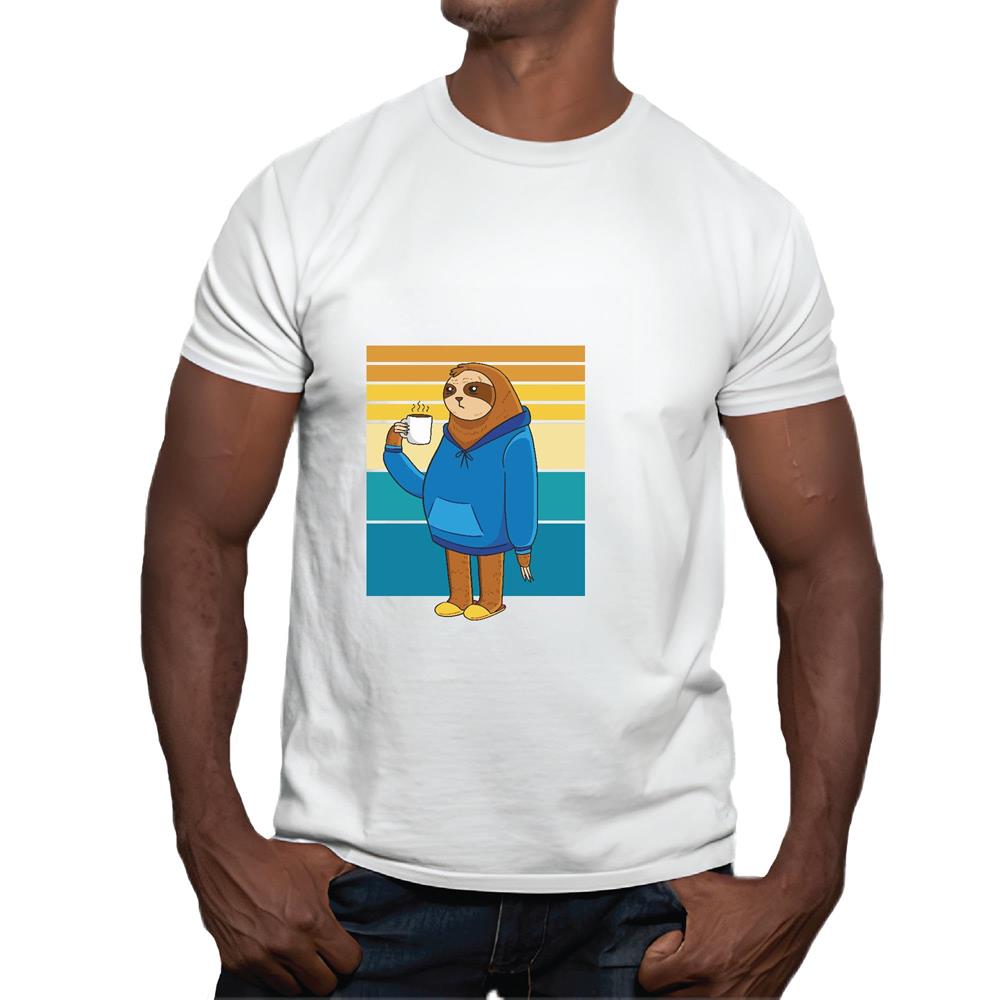 Sloth Coffee Vampire Sunset Design Gift Perfect for Animal Lovers and Coffee Cravings Men Women White Gray Multicolor T shirt