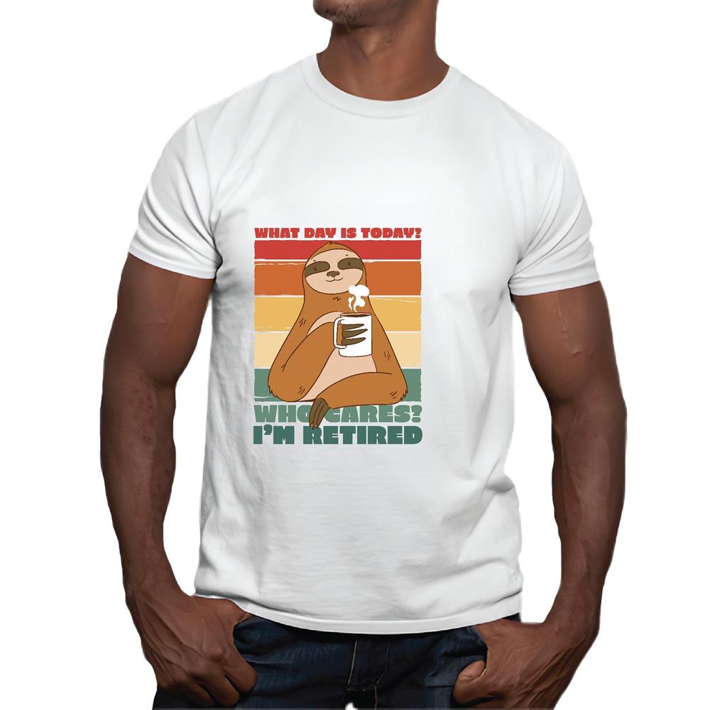 Sloth Coffee Retirement Quote Gift for Retirees Who Cares I am Retired Men Women White Gray Multicolor T shirt