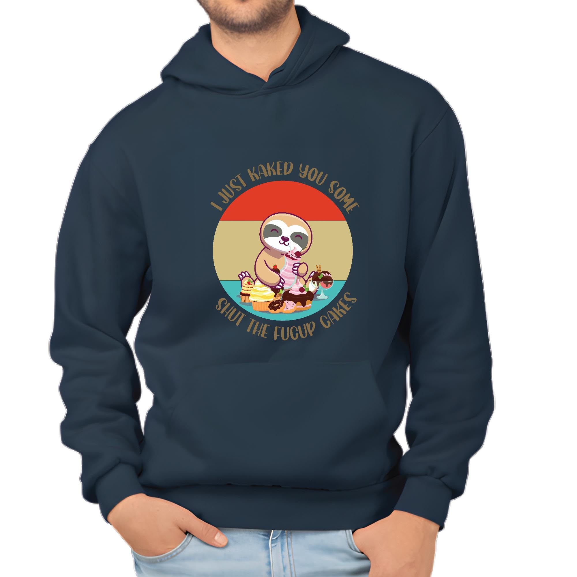 Sloth Cupcakes for Lazy Bakers Chef Cookers Navy and Muticolor Unisex Hoodie
