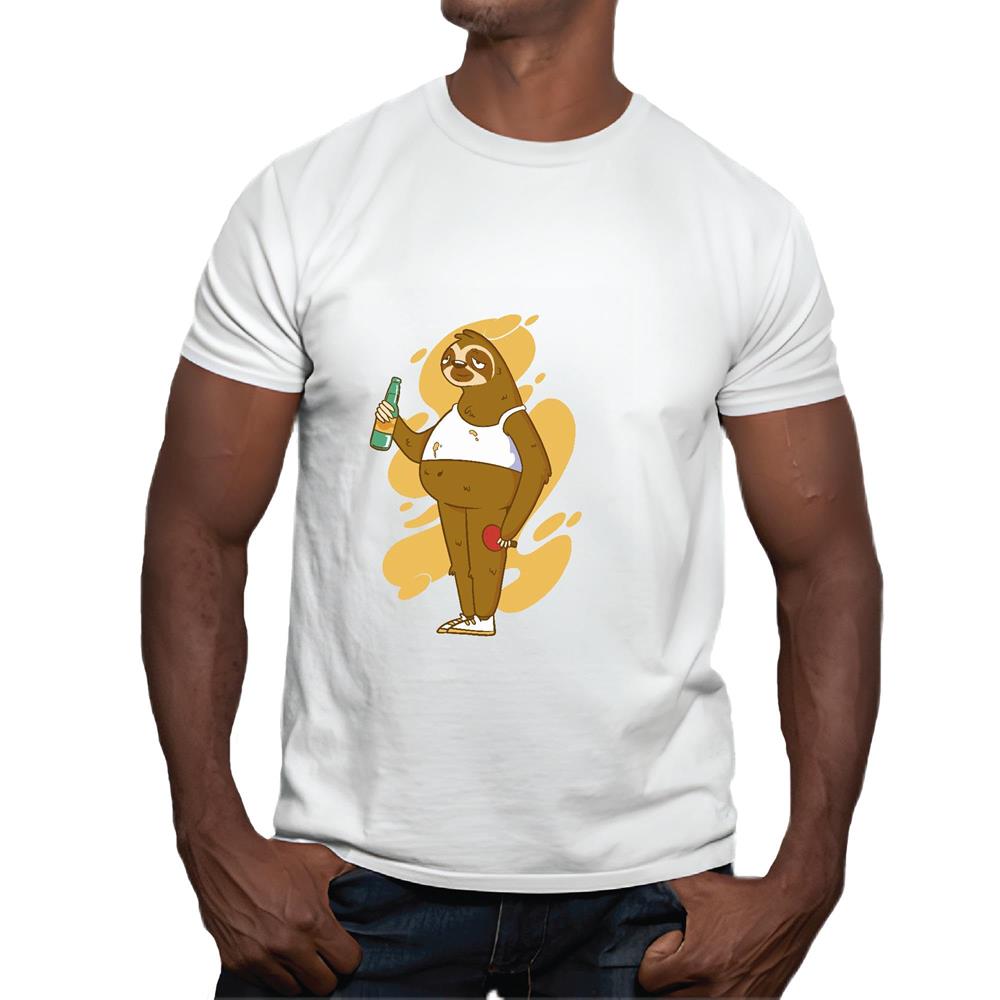 Sloth Design Beer Bottle Pong Gift Ideas for Animal Cassuals and Party Lovers Men Women White Gray Multicolor T shirt