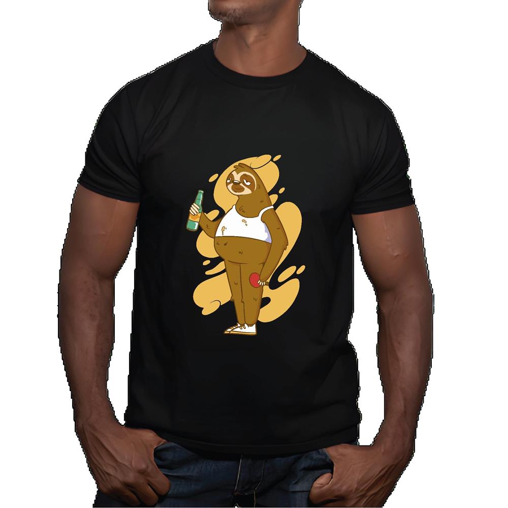 Sloth Design Beer Bottle Pong Gift Ideas for Animal Cassuals and Party Lovers Men Women Black Multicolor T shirt
