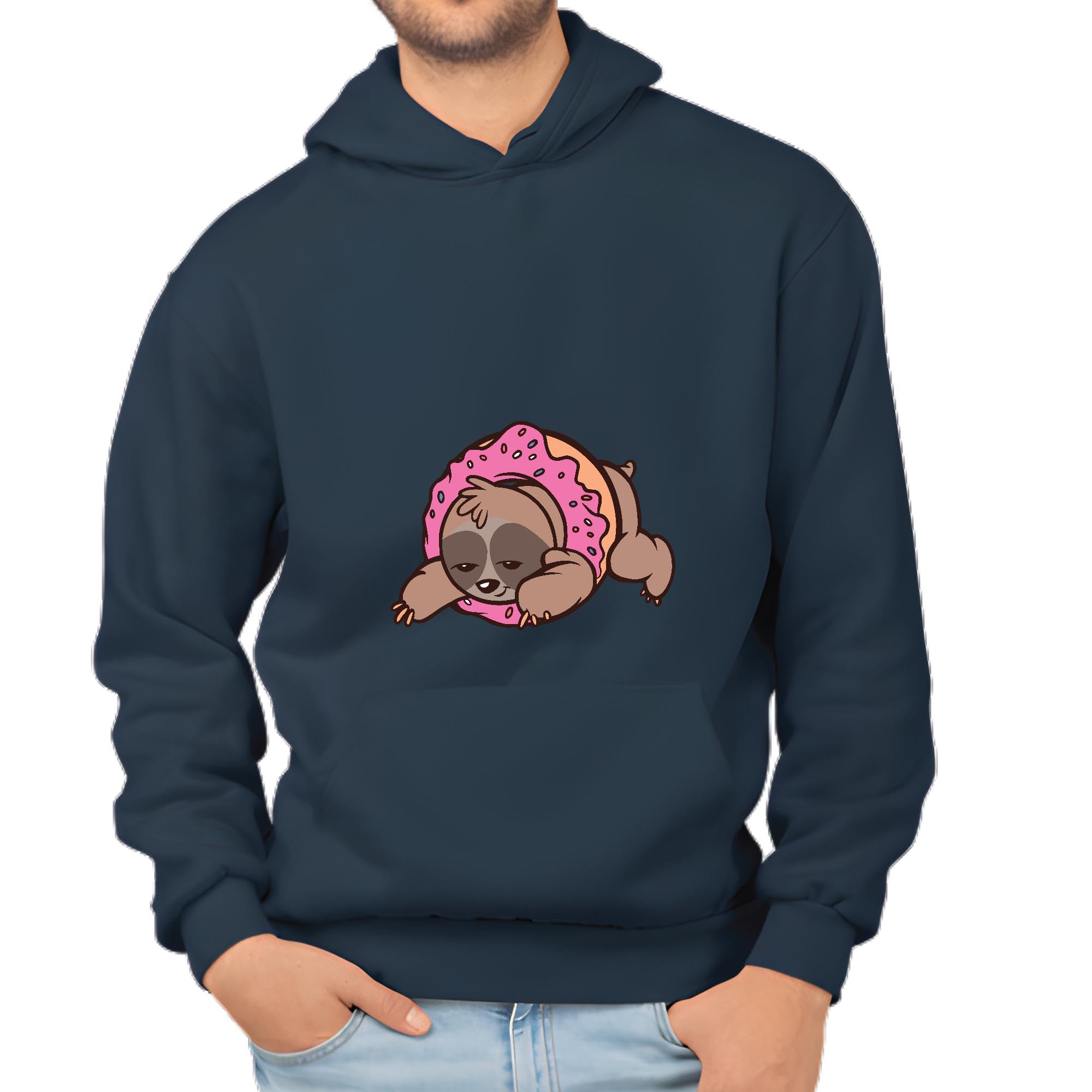 Sloth Donut Gift Sloth Inside Donut Design Gift for Sloth Lovers Navy and Muticolor Unisex Hoodie