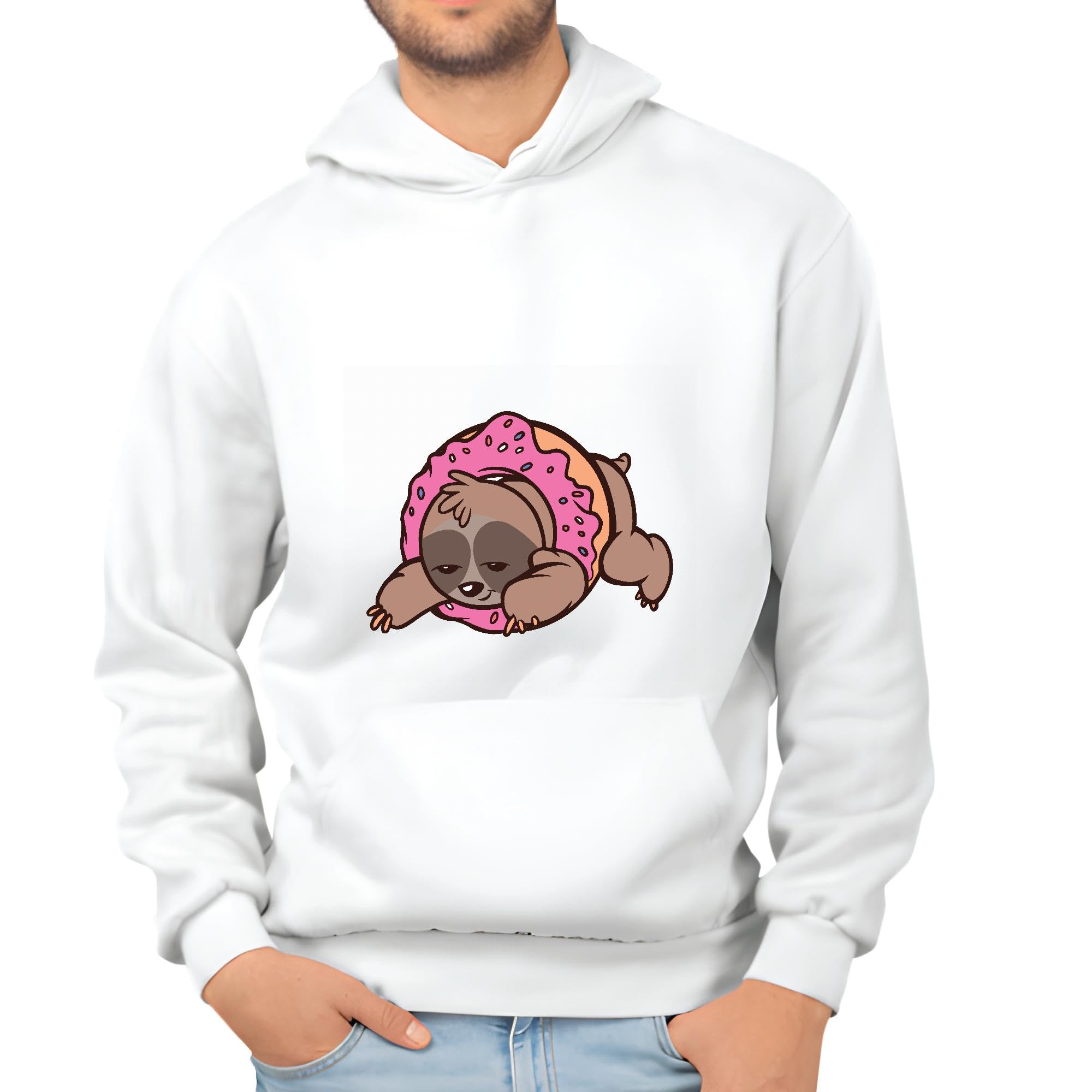 Sloth Donut Gift Sloth Inside Donut Design Gift for Sloth Lovers White and Muticolor Unisex Hoodie