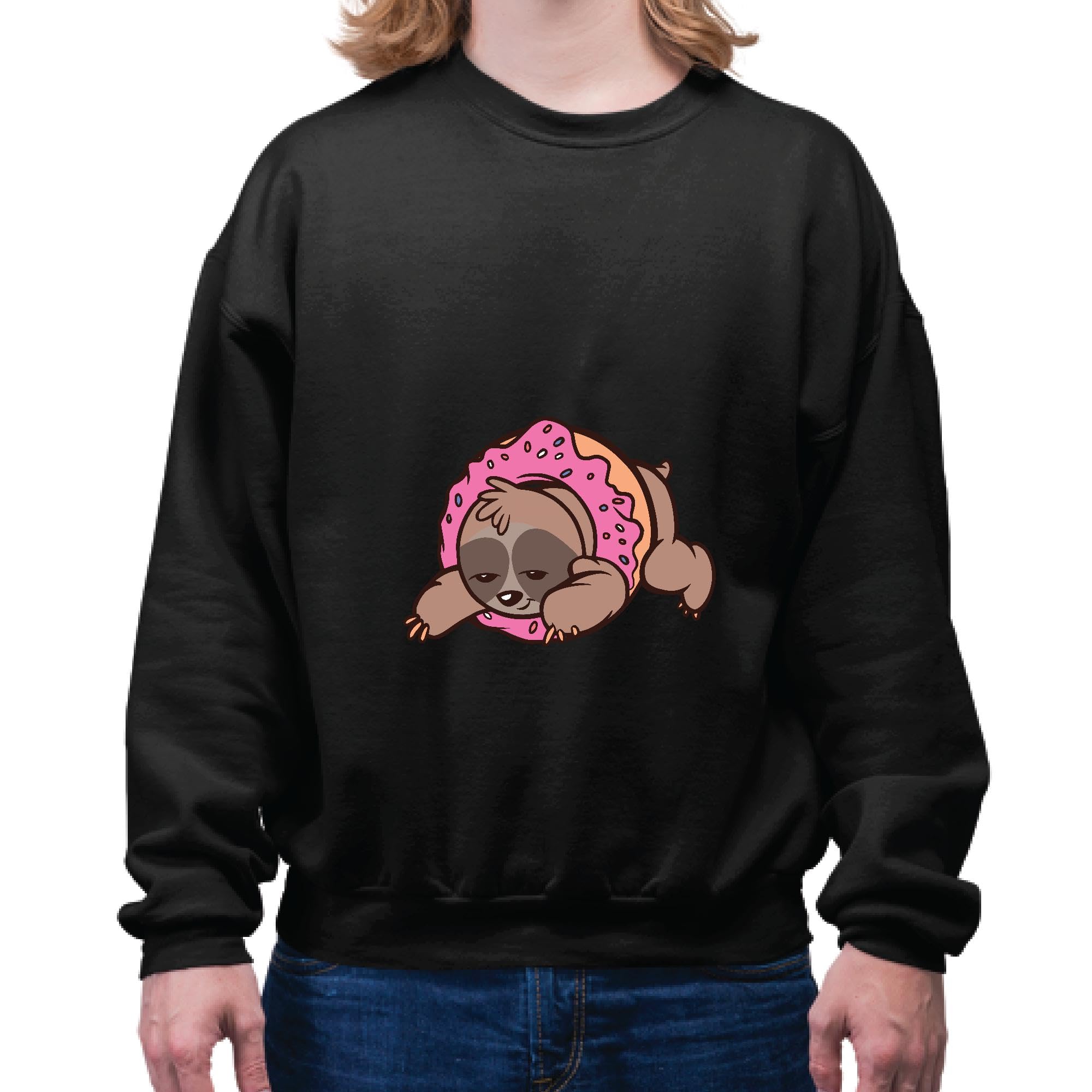 Sloth Donut Gift Sloth Inside Donut Design Gift for Sloth Lovers Navy Black Muticolor Unisex Sweatshirt