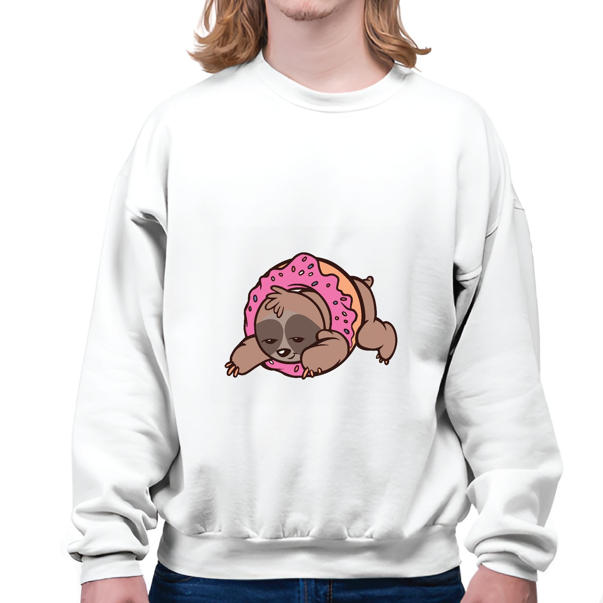 Sloth Donut Gift Sloth Inside Donut Design Gift for Sloth Lovers Grey White Muticolor Unisex Sweatshirt